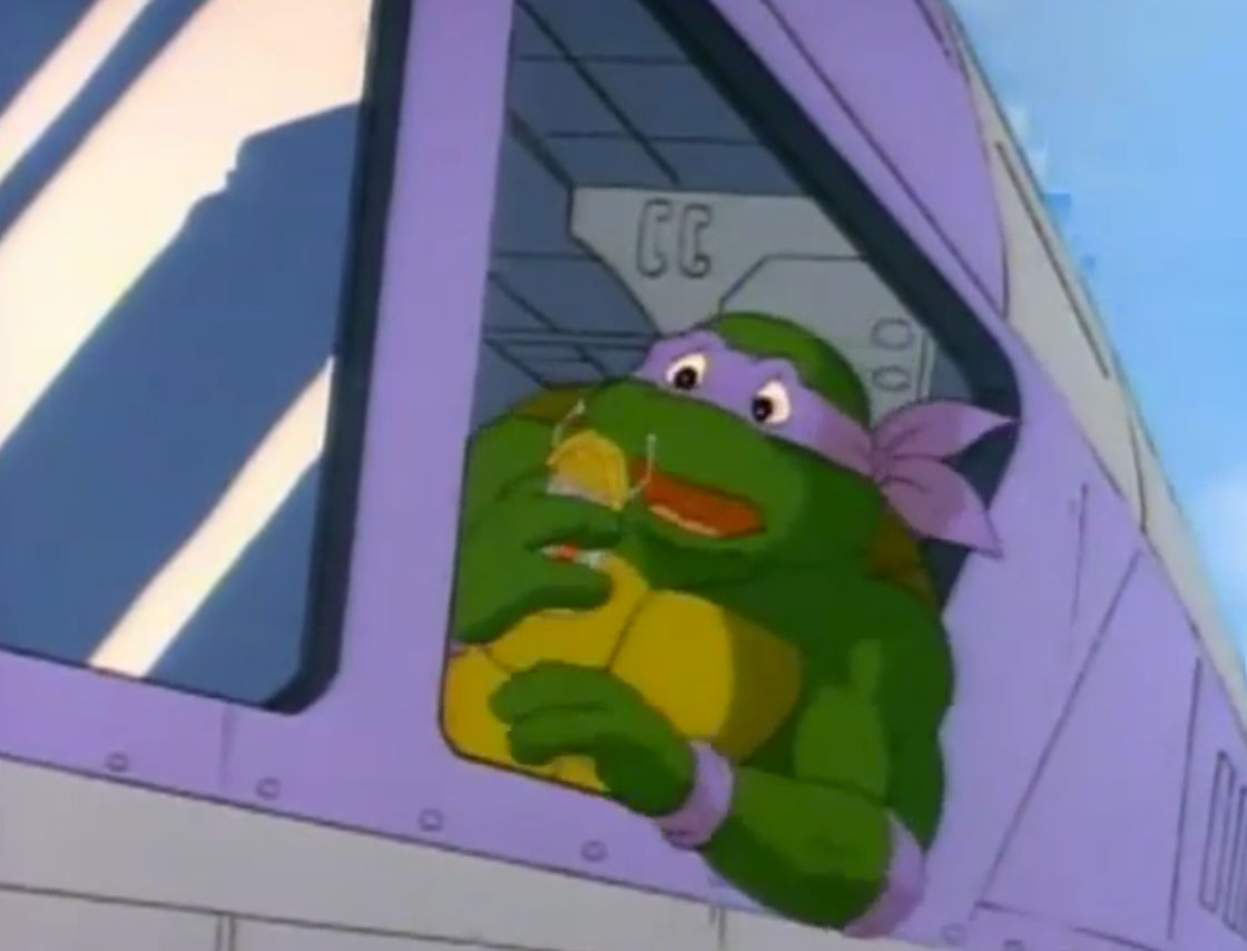 Le train filait en direction de Splinter. Les tortuesre prenaient le Turtle van pour le rattraper. Donatello montait à bord de la locomotive pour sauver leur maître. Hélas, le bricoleur ne parvenait pas à arrêter le bolide, dont le frein avait été cassé. De son bâton, la tortue bougeait l’aiguillage pour détourner le train de sa trajectoire. Splinter était sauvé.