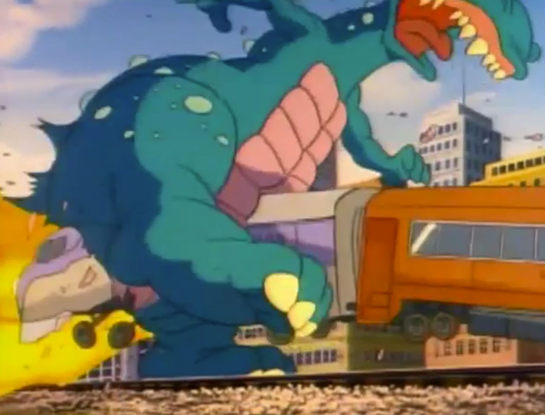 • Gorgonzola est une parodie de Godzilla. Toutefois, il est important de noter qu’au moment où cet épisode a été produit, en 1990, le lézard géant était encore une créature purement japonaise. Le premier film américain de Godzilla, de Roland Emmerich, n’est sorti qu’en 1998. Avant cela, quelques pistes pour un film dans les années 80′ mais surtout des discussions très avancées pour la production d’un film autour de 1994. Le design monstre aurait été assuré par les très talentueux artistes du Stan Winston Studio.