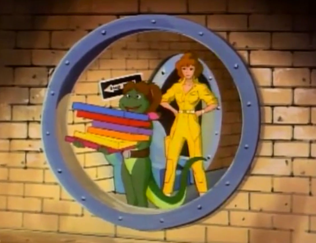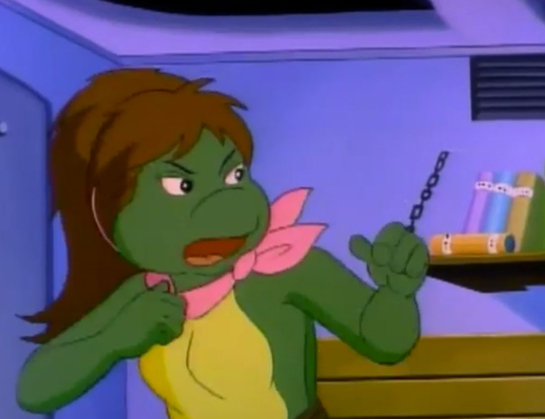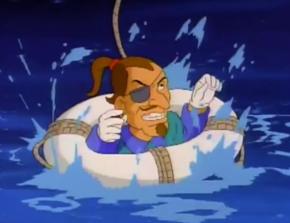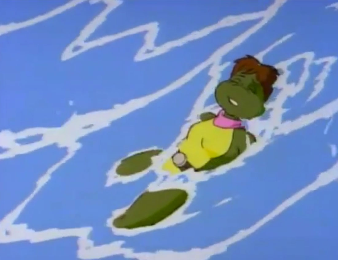 Courant à bord du bateau, la tortue essayait de trouver un plan pour contrer Filch et libérer les otages. Après avoir neutralisé quelques méduses, il sautait avec Mona Lisa à l’eau. Ils se rendaient compte qu’ils étaient plutôt à l’aise l’un l’autre dans l’eau. La tortue lui révélait alors sa vraie identité. Cela rassurait la femme-salamandre qui lui sautait au cou. Avec sa présence, ils avaient peut-être une chance de s’en sortir !