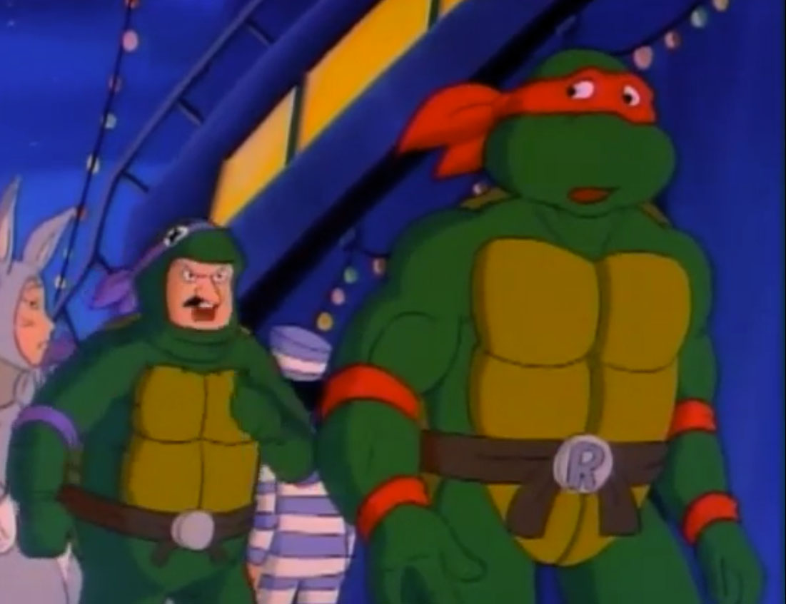 Le soir venu, Raphael quittait les égouts sous les encouragements de ses frères. Voyant les invités monter à bord, la tortue se rendait compte qu’ils étaient effectivement tous déguisés. Il y avait même des tortues ninja !