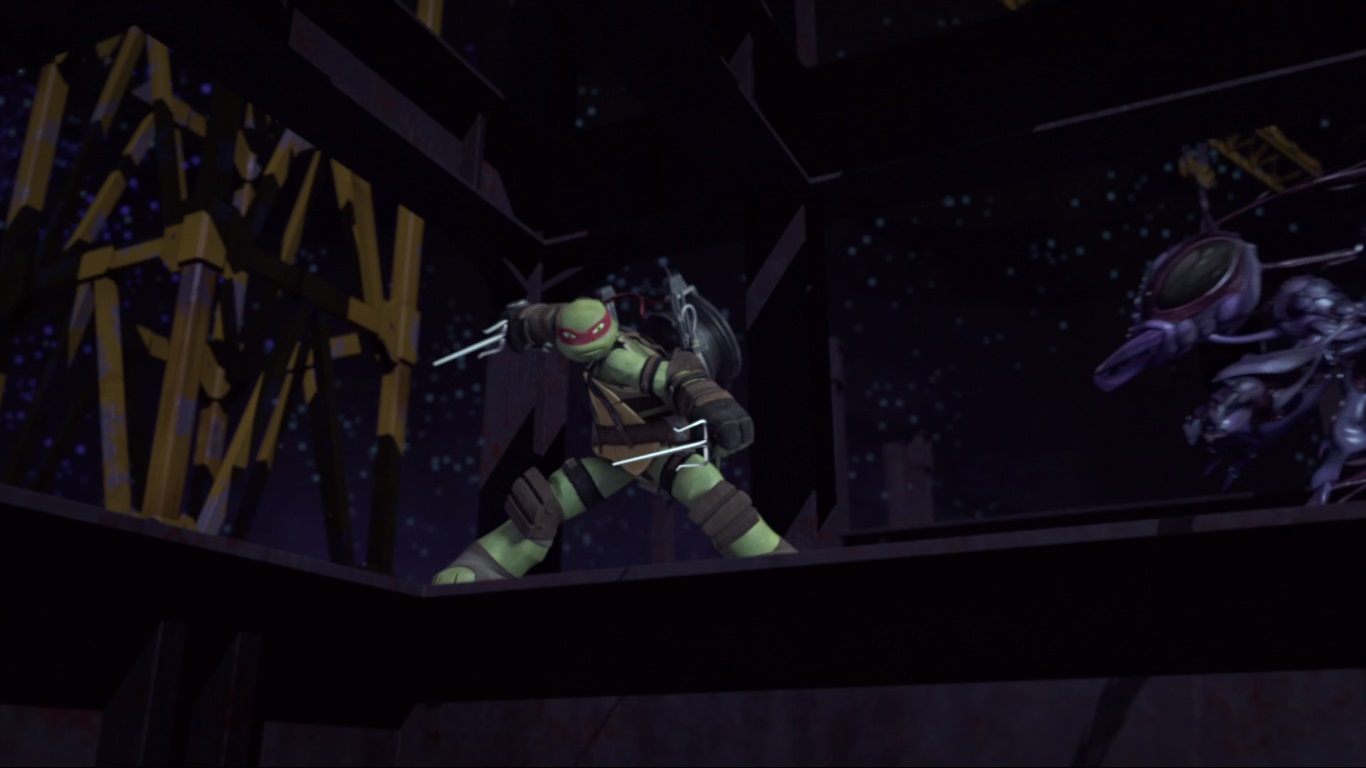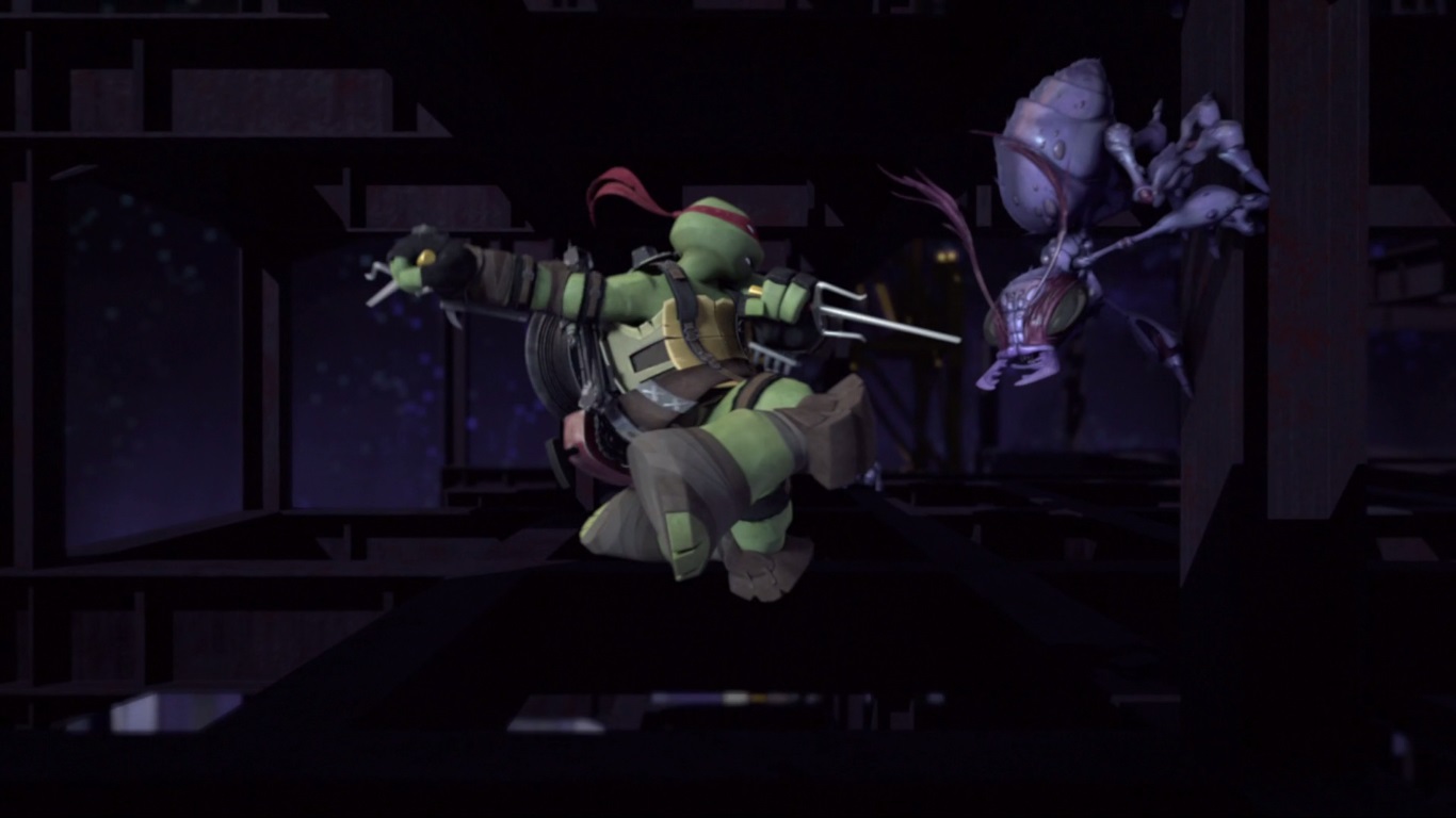 Dans le repaire, Michelangelo venait de rapporter des pizzas. Sur la part de Raphael se trouvait un cafard, que le ninja repoussa d’une pichenette à la grande surprise de ses frères. La tortue était réputée pour sa phobie des insectes. Sa récente expérience dans l’espace avec les armées de Dregg lui avait bien servie. Leonardo interrompait leur conversation pour leur demander de l’accompagner. Il était temps de faire une petite ronde dans la ville au cas où Shredder avait l’idée de venir troubler le calme de New York. Ils devaient le retrouver au plus vite.