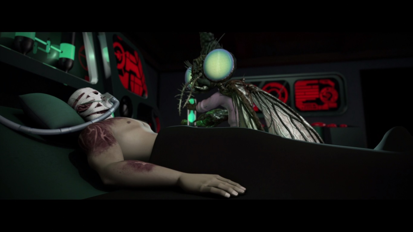 Baxter venait de capturer un homme d’affaire et le plongeait dans une cuve de mutagène pour débuter son plan de reconquête. Le premier insecte de son armée ressortait pour se cacher dans l’ombre. Bientôt, d’autres suivraient le même sort…