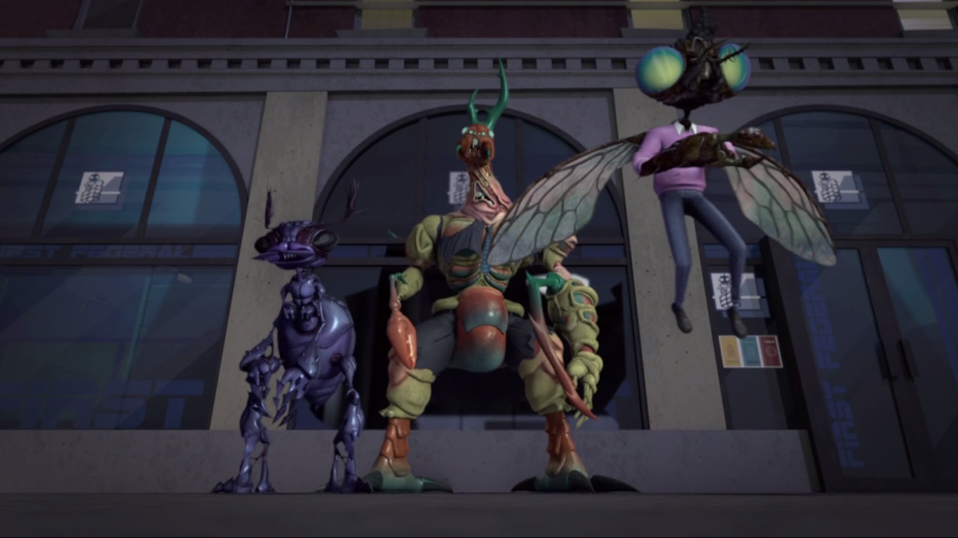 Le Party wagon arpentait les rues de Brooklyn avec à son bord Donatello et April. Leonardo et Michelangelo se trouvaient sur les toits à débattre du meilleur dessin animé, tandis que Raphael et Casey inspectaient les ruelles. Une banque se faisait cambrioler non loin de ces derniers et deux policiers intervenaient. Voyant qui étaient les cambrioleurs, Baxter, son nouvel acolyte mutant et une sorte de fourmi bipède, ils furent quelque peu déconcertés. Après avoir jeté les policiers contre les murs de la banque pour les assommer, les insectes pouvaient ramasser leur argent. La fourmi donnait naissance à une seconde créature identique depuis son dos. Cette dernière en faisait de même. Raphael et Casey faisaient leur entrée à leur tour. Si le justicier s’amusait à rentrer dans le tas, Raphael restait pétrifié à la vue de l’armée d’insectes. D’autres fourmis composaient les rangs de Stockman. Immobile, le ninja était comme plongé dans une hallucination qui donnait vie à un Dregg qui se multipliait, puis à Mona Lisa, qui se transformait en Cafard Terminator. C’en était trop, il prenait la fuite, laissant son ami à son sort. L’ancien homme d’affaire, devenu Scumbug, déversait une substance collante depuis l’arrière de son abdomen pour le capturer.
