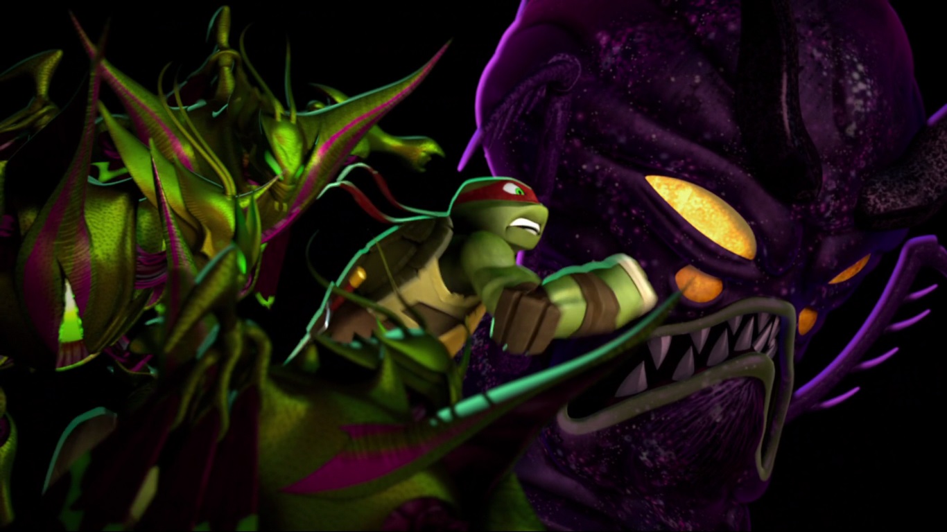 De retour au repaire, Raphael déprimait. Lui qui pensait avoir enfin vaincu sa phobie des insectes en passant plusieurs mois dans l’espace sur des planètes envahies de ces créatures répugnantes, le constat était amère. Splinter l’invitait à méditer à ses côtés pour soigner ce mal profondément ancré dans son esprit. Il lui enseignait alors un mantra.