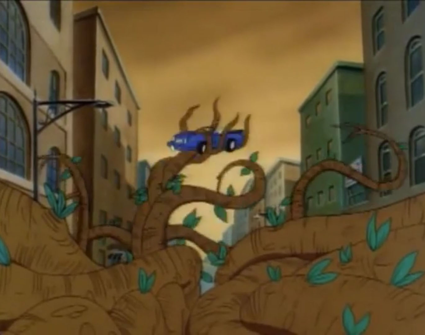 De retour dans les égouts, Donatelllo faisait part de sa déception à ses frères devant une bonne pizza. Ils se montraient enfin compatissants. La tortue reconnaissait que l’échec de l’invention n’était pas si mal. Le cas contraire aurait pu être ravageur pour la ville. Il ne croyait pas si bien dire ! Bientôt, des racines sortaient du sol et envahissaient tout Manhattan. Burne Thompson, à bord de sa nouvelle voiture, se faisait emporter dans les airs. Il avait à peine le temps de demander à April de couvrir cet évènement des plus étranges. Dans le repaire, les tortues se faisaient soulever avec leur canapé avant de comprendre ce qu’il se passait. L’invention de Willard fonctionnait bel et bien !
