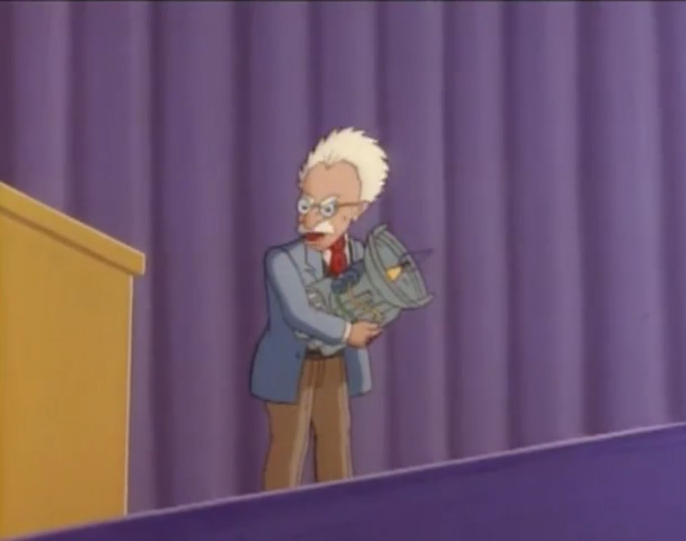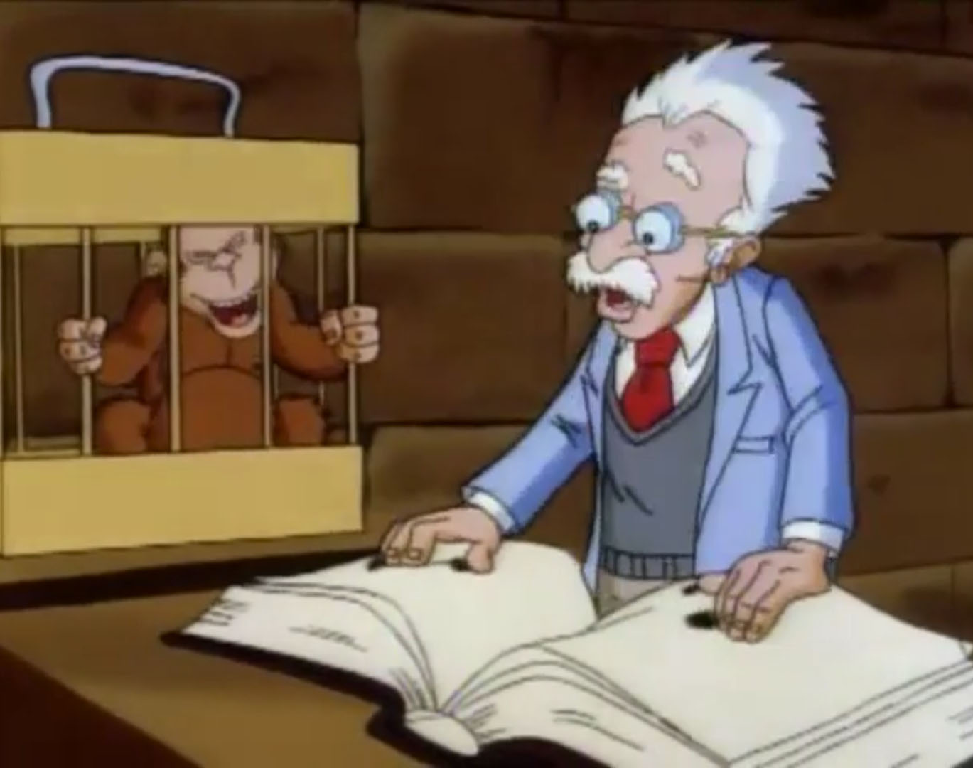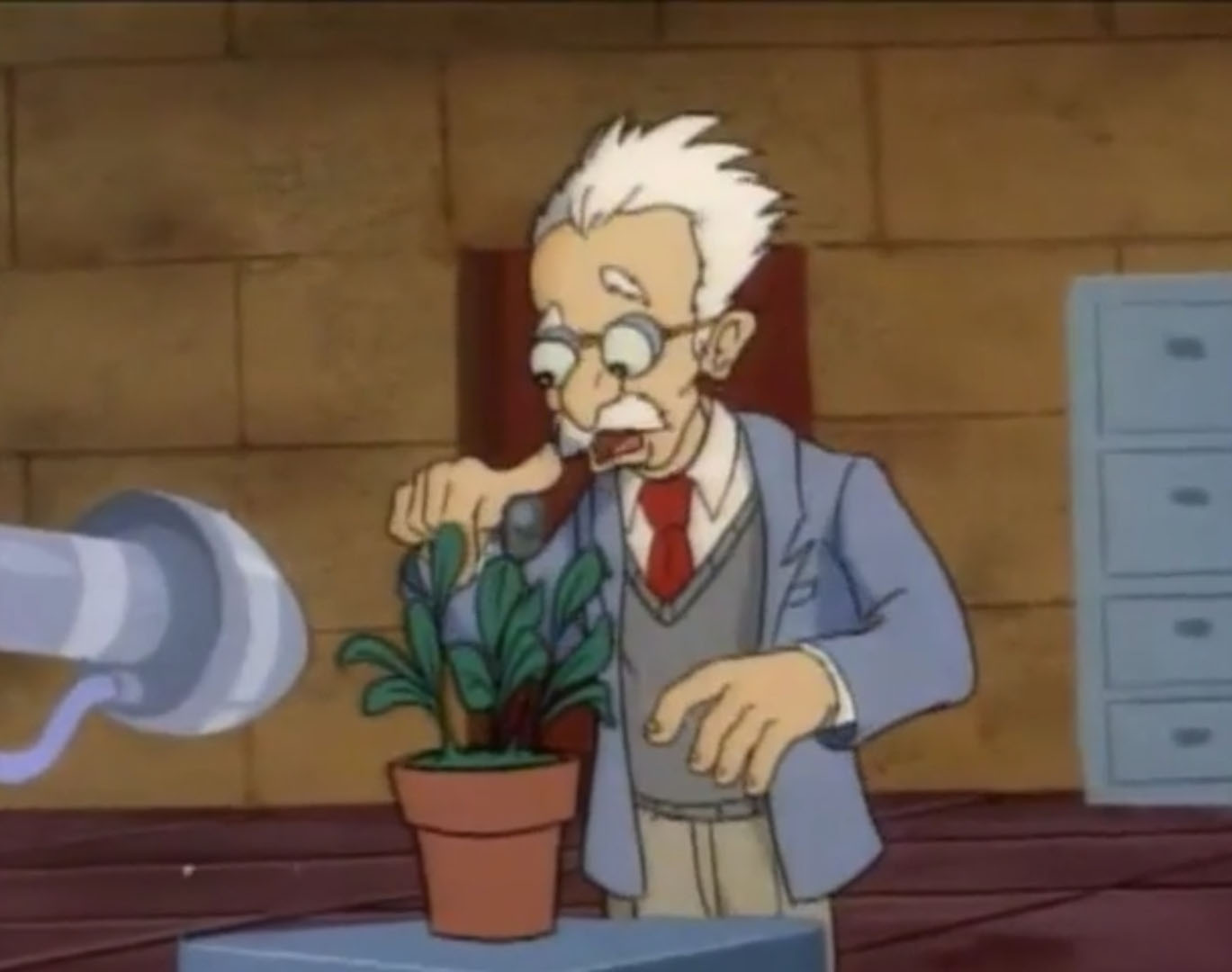 Après sa conférence ratée, April avait présenté Donatello au professeur Willard, afin qu’ils puissent travailler ensemble. L’homme, encore sous le choc de la réception qui lui avait été donnée lors de sa présentation, acceptait l’aide de la tortue, décrite comme un grand scientifique. Elle cherchait surtout à le rassurer. Le vieil homme ne voyait pas très clair et tendait une banane à Donatello, pensant qu’il s’agissait de Jocko, son singe de laboratoire. Après cela, ils pouvaient se mettre au travail. Le professeur voulait tester son invention, qui se présentait sous forme d’une parabole géante, sur une plante. Mais en l’activant, celle-ci commençait à tirer des rayons dans tous les sens. Elle n’avait pas été fixée correctement. Jocko recevait un tir sur les fesses. Mais les rayons avaient également traversés le sol et touchés les racines des arbres. Rien ne se passait. C’était un nouvel échec…