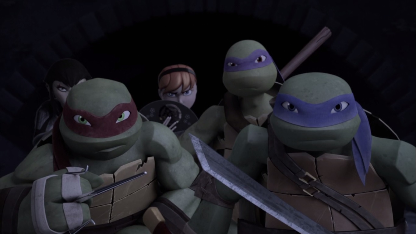 Pendant ce temps, les tortues et leurs amies étaient encore abasourdies par le spectacle auquel elles venaient d’assister. Leonardo refusait de croire que Splinter n’était plus. April cherchait une trace de l’esprit de son sensei, mais ne détectait plus rien. Elle espérait simplement qu’il demeure inconscient, au fond de ce trou. Il était hors de question qu’ils fuient face à leurs ennemis, le sacrifice de Splinter ne serait pas vain.