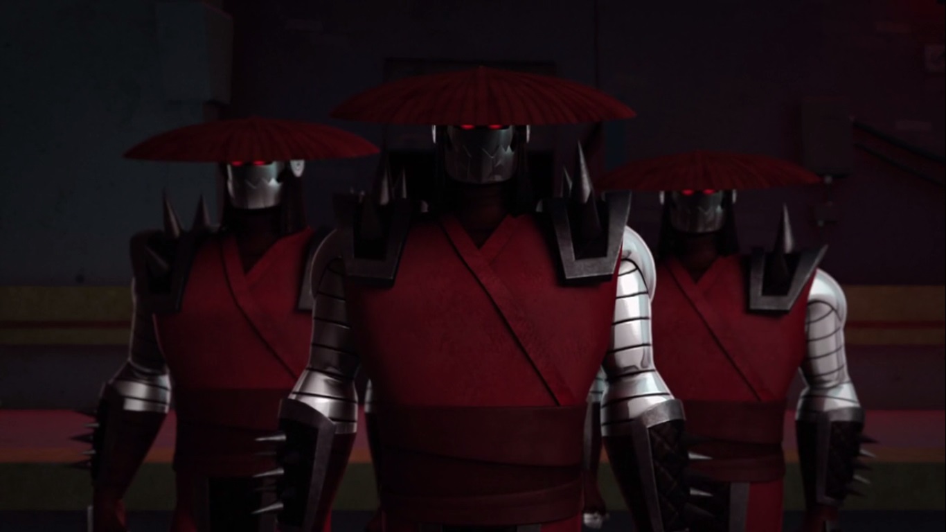 - Dans l’épisode précédent, le départ des tortues du lieu où Splinter était tombé sous les flèches des Footbots d’élite rappelait la scène de la Communauté de l’Anneau. L’introduction de cet épisode fait une fois encore référence à l’adaptation cinématographique du livre de Tolkien Le Seigneur des Anneaux, cette fois de Les Deux Tours, avec la scène de la chute de Splinter combattant malgré une mort certaine Super Shredder, rappelant Gandalf face au Balrog.