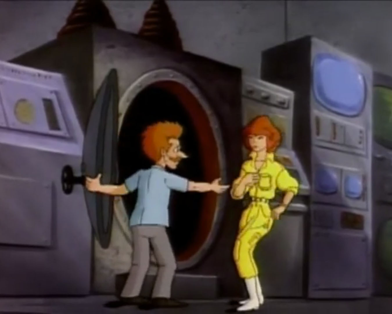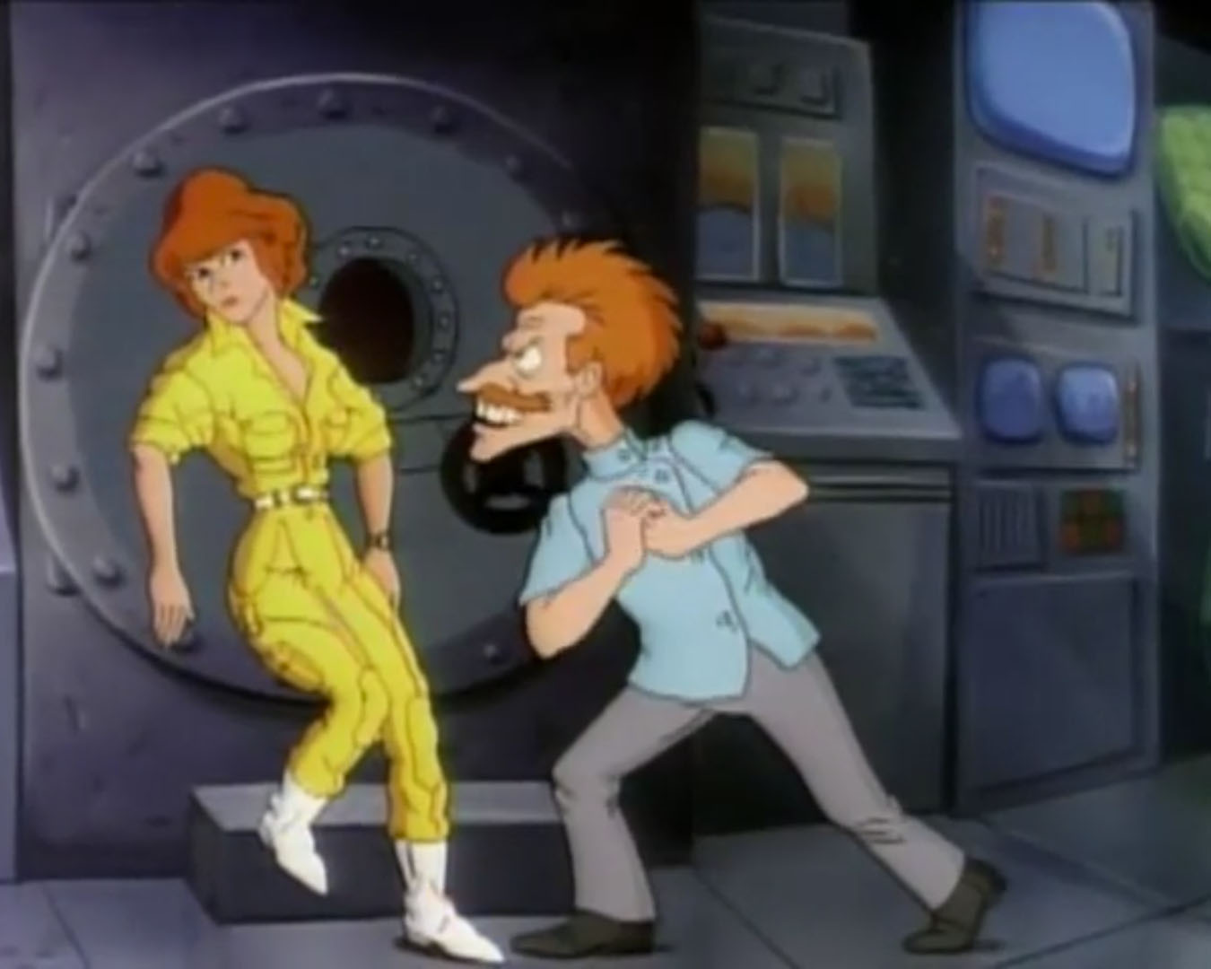 À la surface, Thompson était dégouté de l’absence de sa journaliste vedette. Vernon en rajoutait une couche, lui rappelant qu’elle n’était pas professionnelle. April avait bien d’autres problèmes à ce moment. Le caisson dans lequel elle se trouvait ne fonctionnait pas correctement. Polidorius la sortait un instant pour réparer ce qui dysfonctionnait. La journaliste en profitait pour se diriger vers la console du scientifique pour envoyer un appel à l’aide aux tortues sur leur communicateur. Une fois le caisson prêt, elle était jetée de nouveau à l’intérieur.