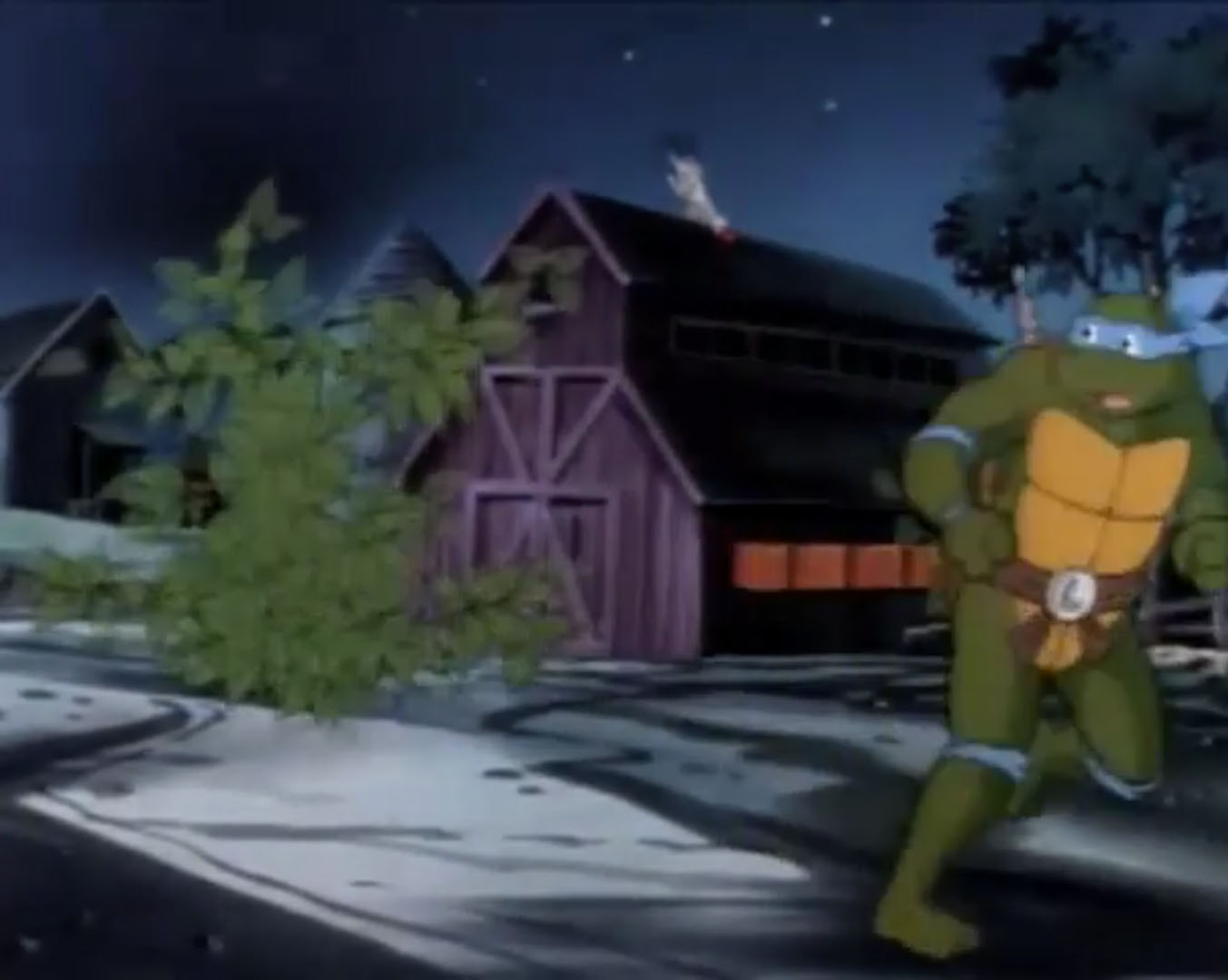 De son côté, April attendait toujours Leonardo sur le bas-côté de la nationale. Soudain, elle se faisait éblouir par un flash. Il s’agissait de l’étrange hélicoptère que Leonardo avait vu plusieurs heures auparavant. L’appareil envoyait un rayon sur la journaliste. Au même moment, un bras télescopique la saisissait à la taille pour l’emporter dans les airs. Leonardo arrivait trop tard et voyait la machine reprendre son envol. Au moins il le reconnaissait ! En revanche, le mutant n’avait pas vu que son amie avait été enlevée. Des choses bien étranges se produisaient dans les environs. Comme si cela ne suffisait pas, les villageois arrivaient au même moment. La tortue partait se cacher dans un arbre. Mais les individus l’avaient aperçus. Ils se lançaient à sa poursuite. Le ninja apercevait une meilleure cachette dans une grange et partait en sa direction. Rien à faire, les hommes le suivaient toujours. Il coupait à travers champs, regrettant un peu plus à chaque instant d’avoir quitté la tranquillité des égouts. Soudain, le ninja se trouvait face à un taureau. Bousculé, Leonardo tombait d’une falaise jusqu’à la remorque du fourgon de Billy. L’homme, bien que simplet, avait un grand cœur. Il se réjouissait d’avoir pu amortir la chute de cet extraterrestre. Leonardo avait beau lui expliquer qu’il se fourvoyait, rien n’y faisait. Au moins il lui offrait une part de pizza. Billy avait vu à plusieurs reprises l’OVNI ces dernières semaines, toujours au même endroit. La tortue lui demandait de l’y conduire pour tirer tout cela au clair.