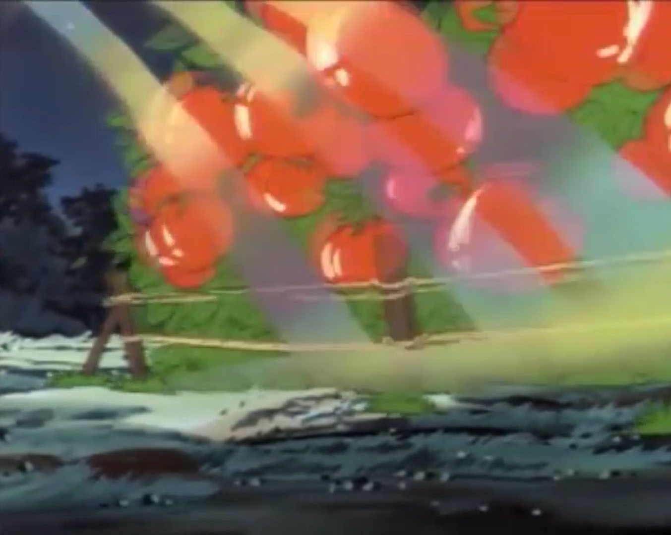 Davens espérait que l’attaque des tomates fasse fuir les habitants aux alentours. Mais le plan du fermier était compromis. Les tortues arrivaient pour semer la pagaille dans son laboratoire. Elles se faisaient ligoter par des lianes. Michaelangelo n’avait pas dit son dernier mot. À l’aide de son grappin, il enclenchait le rayon laser qui frappait la voiture de Davens. Des légumes se trouvaient à l’arrière. Ceux-ci devenaient gigantesques et écrasaient son véhicule. Tout était terminé. Le fermier finirait derrière les barreaux. Les tortues repartaient pour New York.