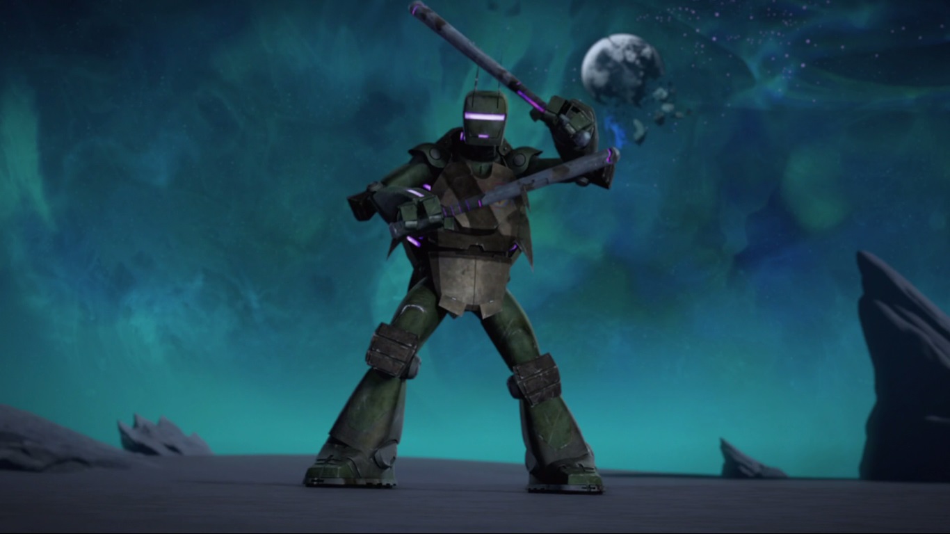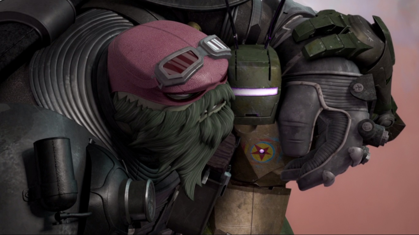 • L’apparence du robot, bien qu’elle soit calquée sur celle de Donatello dans cette série, rappelle aussi celle de Chapie, du film sorti en 2015. Cela vient notamment de ses longues oreilles.