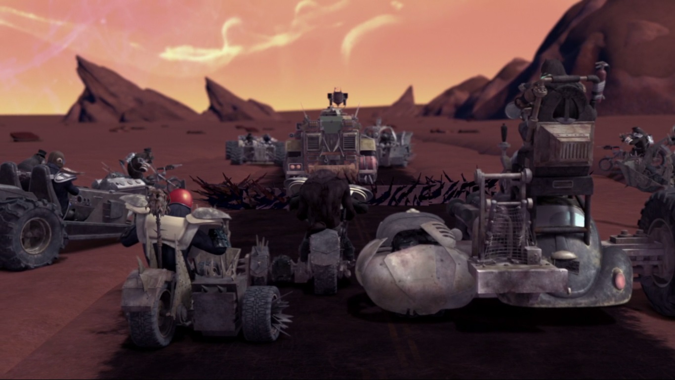 • Cet arc de trois épisodes est un immense hommage à la saga Mad Max, de George Miller, où l’on retrouve de très nombreuses références. Outre les films plus anciens, ces épisodes ont été produits en 2016 pour une diffusion l’année suivante, soit seulement deux ans après le succès remarqué de Mad Max : Fury road, qui relançait la saga de George Miller, initiée 35 ans auparavant.