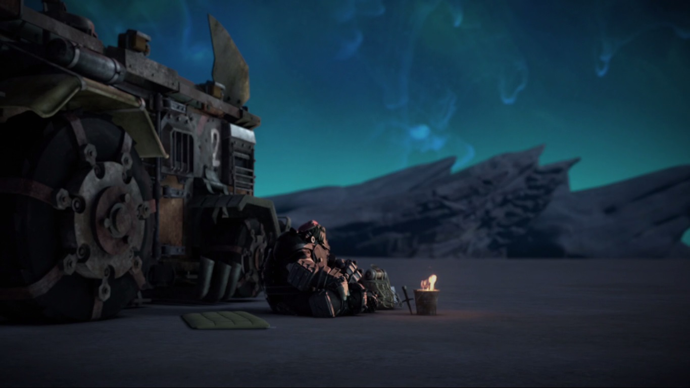 Une fois la nuit tombée, la luminosité perdurait grâce notamment à la lune – ou tout du moins ce qu’il en restait, le satellite était gravement détruit dans le ciel. Raphael avait dressé un feu de camp. De ses saïs, il faisait griller quelques cafards pour les manger. Il parlait avec Donatello, resté dans le véhicule dont il semblait dépendre. Le monde avait changé et eux aussi. En réalité, le ninja ne se souvenait plus de grand-chose avant le cataclysme.