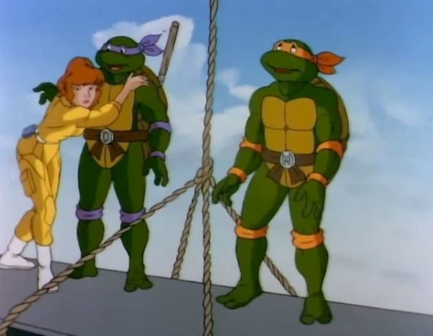 Les ondes ne portaient plus sur les habitants, qui se réveillaient soudainement. Michaelangelo et Irma pagayaient à contre-courant pour ne pas mourir. Les autres citoyens avaient rejoint le bateau pirate et déferlaient sur Shredder. Les tortues abordaient le navire à leur tour pour capturer leurs ennemis. Raphael s’emparait de l’homme au masque de fer tandis que Donatello manœuvrait pour ne pas que le bateau de Woof tombe dans le gouffre. Tout était terminé.