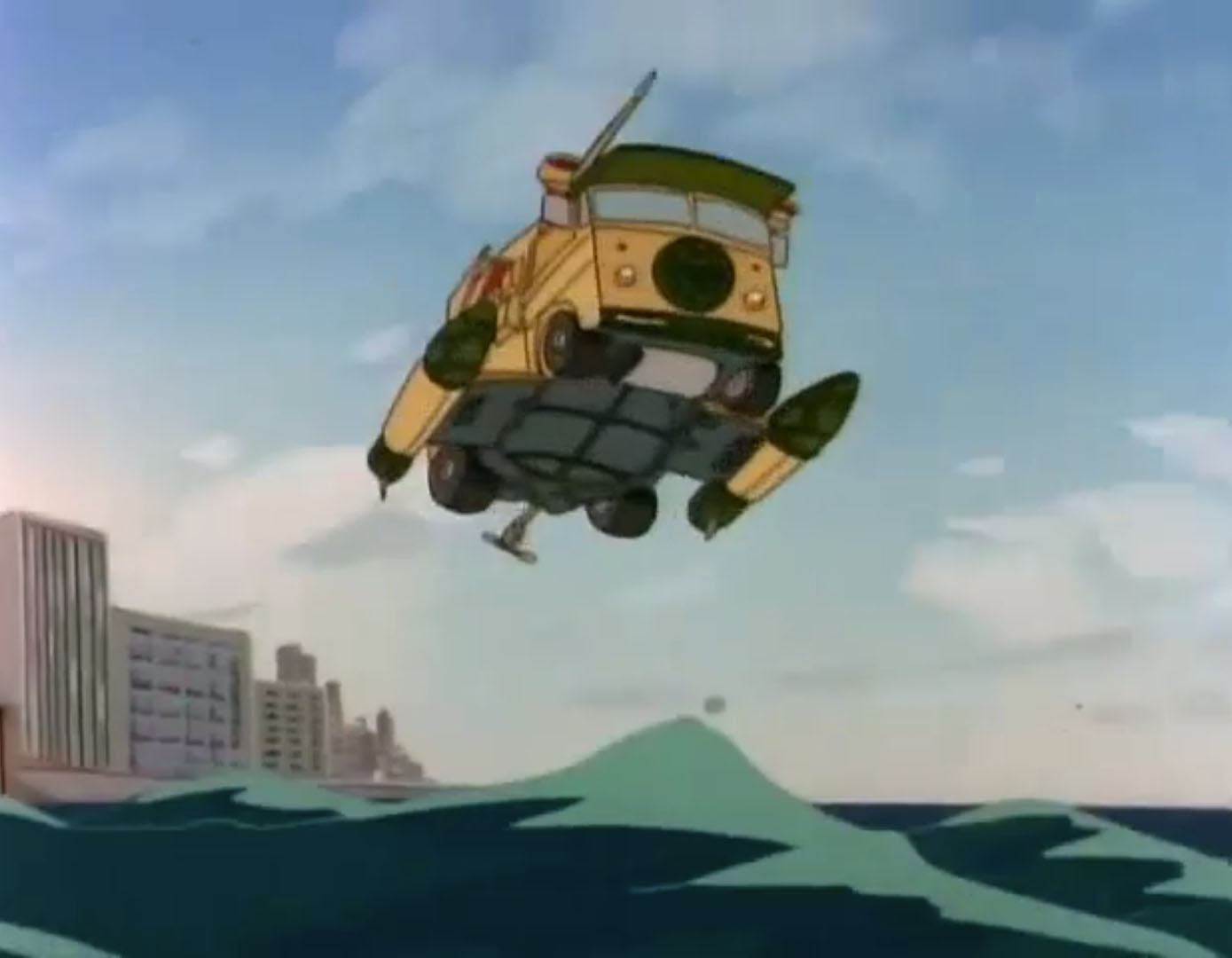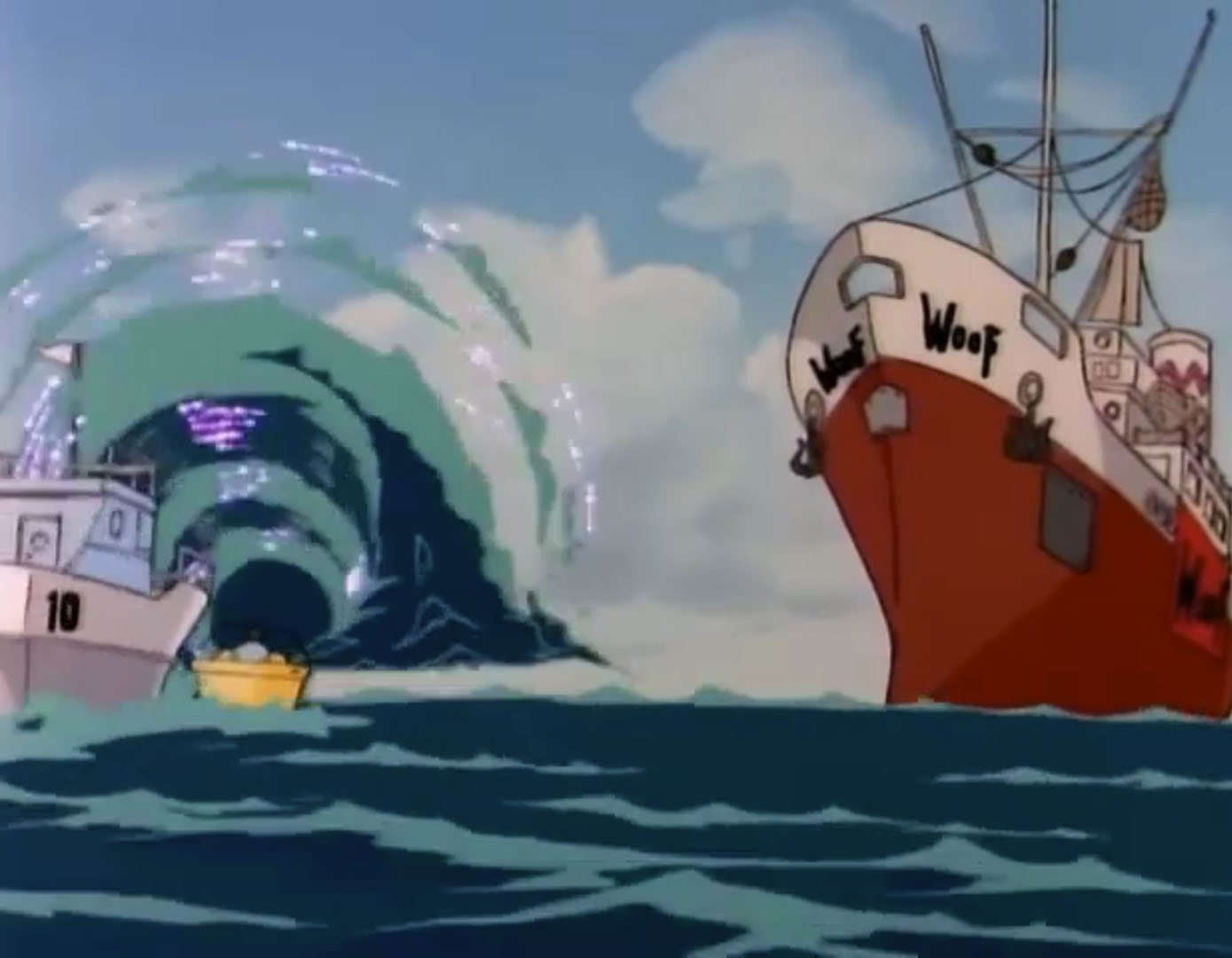 Depuis ses appareils, Krang se réjouissait de voir que l’une des tortues s’apprêtait à périr. De retour à bord du Turtle van, les mutants se dirigeaient vers les docks. Il ne restait plus un seul bateau pour traverser l’eau. Ce n’était pas un problème pour le van, qui pouvait flotter ! Des bouées apparaissaient au niveau des roues.Dans leur baignoire, Irma et Michaelangelo ramaient pour atteindre le siphon du gouffre au plus vite. Heureusement pour eux, le Turtle van filait à toute vitesse vers le bateau de Woof. Donatello avait repéré le ventrilocodeur et brouillait ses ondes à l’aide du matériel à bord du camion. La machine de Shredder lui explosait à la figure.