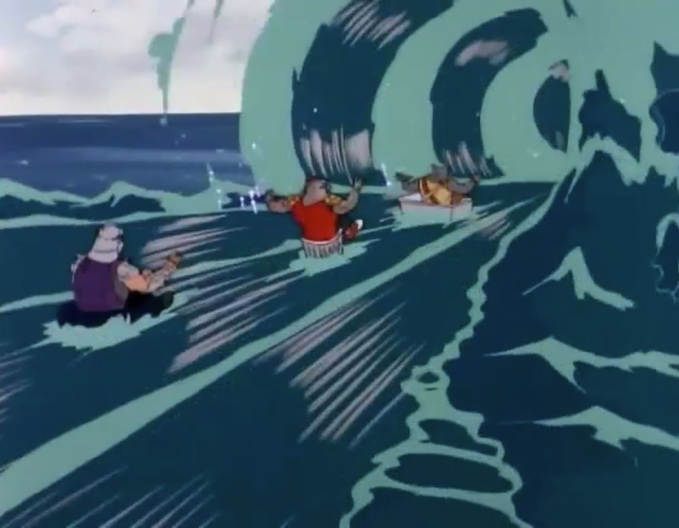 Shredder et ses deux mutants avaient été conduits au bout d’une planche. Ils étaient contraints de sauter, comme tout bon pirate prisonnier. Mais soudain, des tirs lasers venus du siphon les touchaient et les poussaient à l’eau. Krang n’en avait pas fini avec eux et leur ordonnait de rentrer au Technodrome. Tombés dans des poubelles et autres radeaux de fortune empruntés par les habitants de la ville, ils se faisaient aspirer par le siphon du gouffre.