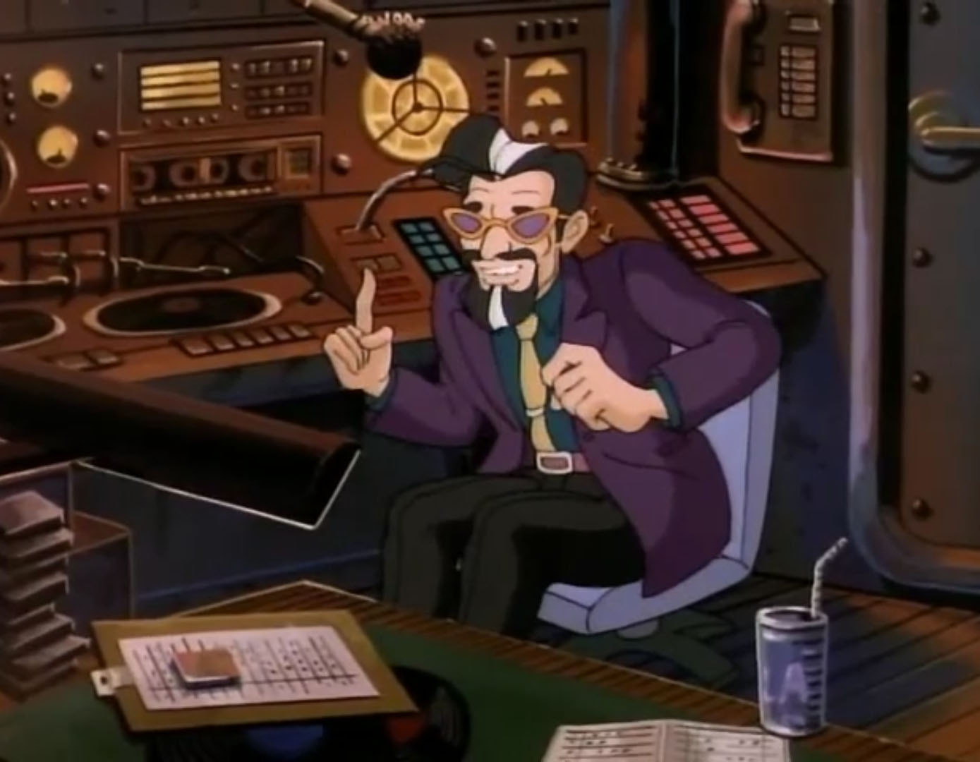 La piste de l’appareil de Krang avait conduit Shredder sur un bateau non loin des côtes de la ville. Il utilisait le ventrilocodeur pour ordonner à l’équipage, ligoté, de lui obéir. Il se trouvait dans la station de Woof et s’apprêtait à s’emparer de la ville grâce à la radio…