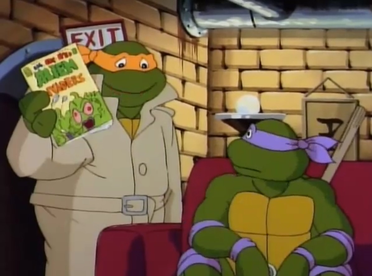 Les deux tortues avaient fait croire aux extraterrestres qu’ils partaient. Mais en réalité ils faisaient le tour du complexe pour l’investir à l’aide de la catapulte du Party wagon. Entrant dans le bâtiment, Michaelangelo voyait une lumière forte scintiller depuis une fenêtre. Donatello coupait le courant ce qui attirait l’attention de Wingnut, qui partait voir ce qu’il se passait. Il voyait les deux mutants entrer dans le bâtiment et sonnait l’alarme.