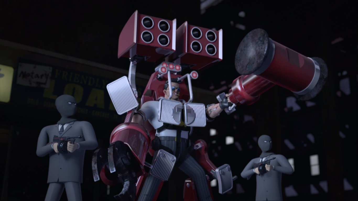 Kavaxas ne tardait pas à recevoir de la visite. Hammer et quelques hommes sortaient du bâtiment en guise de dernière vague de défense. L’armure mecha du mafieux était inefficace face au démon qui repoussait les tirs de missiles qui s’écrasaient contre la façade de l’hôtel derrière lui. L’un d’eux délogeait Donatello, toujours en train d’essayer d’entrer depuis une fenêtre. Il faisait une chute périlleuse avant d’être rattrapé par Leonardo.
