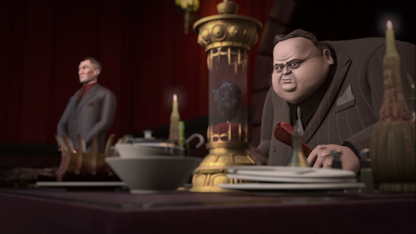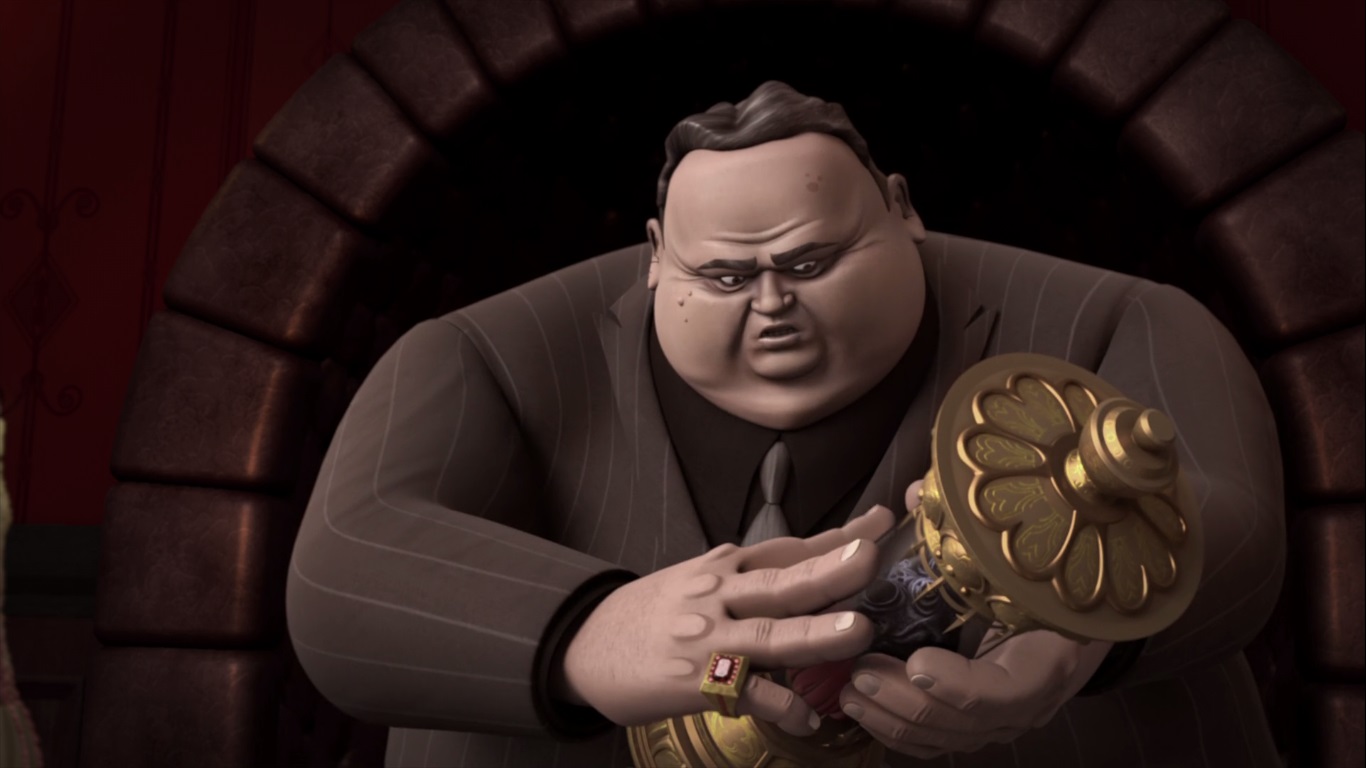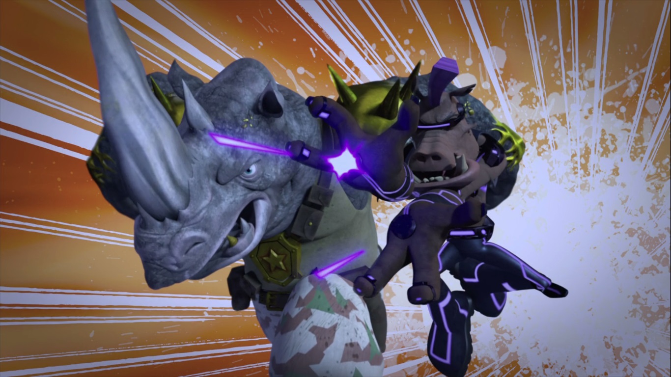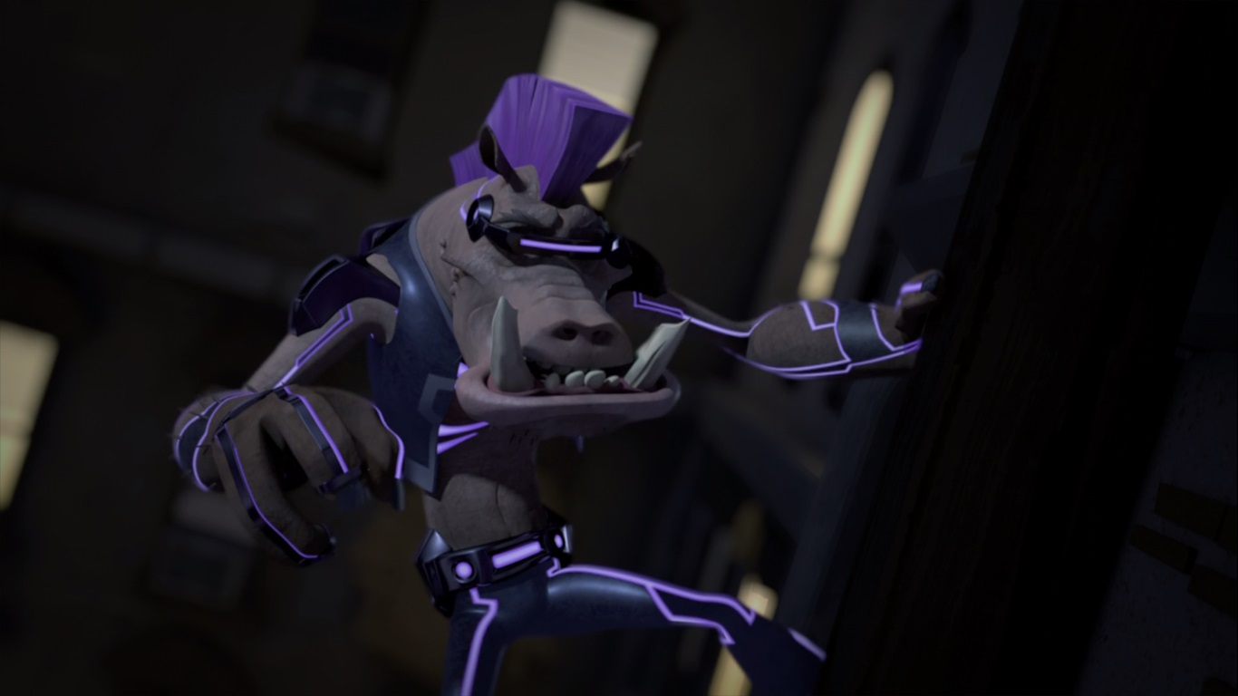 Rocksteady arrivait au niveau du restaurant de don Vizioso, le Dell’Abate. Il ne tardait pas à se faire rejoindre discrètement par Bebop, qui venait de se débarrasser de la moto de ses adversaires. Grâce à la technologie de ses lunettes thermiques, il observait ce qui se trouvait à l’intérieur du restaurant. Il voyait son propriétaire, toujours attablé et le cœur posé à côté de lui. Ils étaient à la bonne adresse ! Le phacochère comptait entrer seul, dissimulé par son camouflage optique. En cas d’ennuis, Rocksteady serait le plan B. Cela n’étonnait qu’à moitié Donatello que don Vizioso ait en sa possession le cœur de leur ennemi. Mais ils devaient agir au plus vite, ou Shredder serait bientôt de nouveau un problème. Leonardo préférait rester cacher et observer ce qui allait suivre. Hors de question pour son frère de rester les bras croisés. Il avait d’autant plus un compte à régler avec la pègre (Les mutants contre-attaquent, S4 E18).