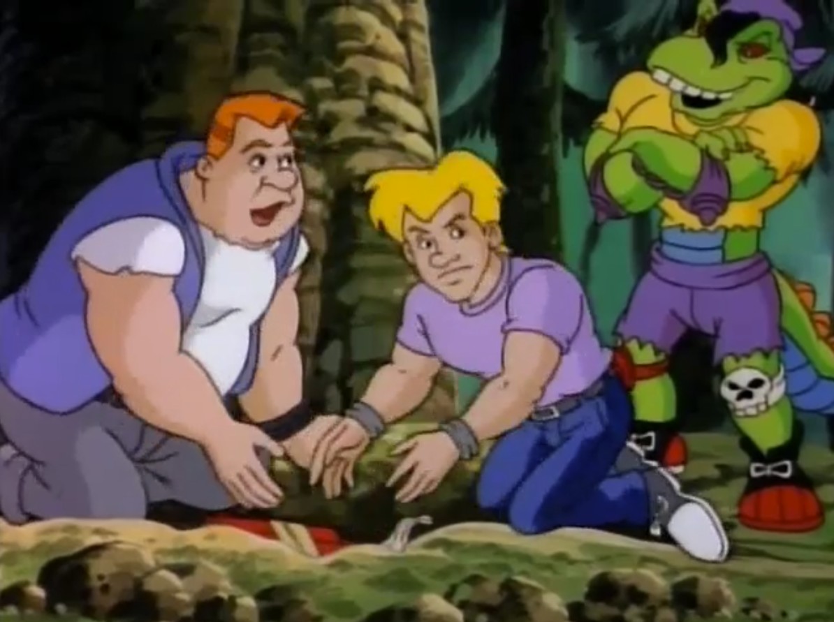 Profitant de l’absence des deux malfrats, Michaelangelo entrait dans l’entrepôt pour prendre sa revanche. Mais au même moment, les acolytes revenaient, attaquant la tortue. Ils finissaient au tapis jusqu’à ce que Mondo Gecko capture le ninja à l’aide d’un filet. Cette fois, pour s’en débarrasser, ils allaient le jeter aux requins à travers une trappe sous l’entrepôt. Mais soudain, le gecko fermait la trappe, proposant plutôt de parler de leur prisonnier à Monsieur X.