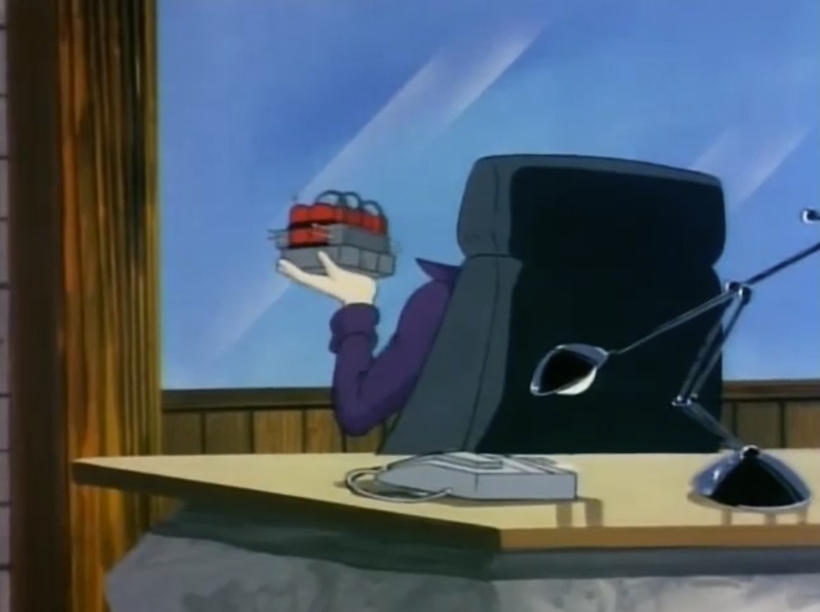 Mondo Gecko amenait Michaelangelo à Monsieur X. L’homme était au téléphone avec le général, en train de négocier la rançon de l’explosif. La tortue avait déjà vu cet homme. C’était celui qui avait enlevé le petit lézard dans ses rêves ! Monsieur X demandait à son gecko de l’éliminer avant de quitter la pièce.