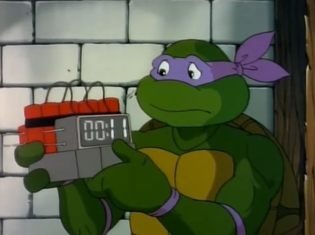 La tortue en avait assez entendu, elle avait tout compris. Monsieur X l’avait élevé pour en faire un criminel. Mais il n’en était pas un ! Ils avaient tout pour être amis même ! Le malfrat était de retour avec ses hommes. Voyant que Gecko n’était pas apte à tuer la tortue, il le ferait lui-même. L’un de ses gros bras fit tomber dans la lutte l’explosif militaire, enclenchant son compte à rebours.Au même instant, les tortues arrivaient depuis une baie vitrée. Michaelangelo sauvait Gecko puis capturait Monsieur X. Le combat était terminé. Mais la situation était loin d’être réglée. Il leur restait 10 secondes pour arrêter l’explosif. Donatello se chargeait de couper les fils. Le temps pressait, il coupait le fil mauve, assorti à son bandeau, sans grande conviction. C’était le bon !