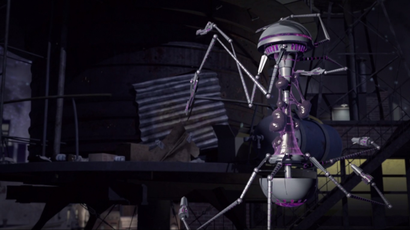 Tout du moins jusqu’à entendre un terrible rot qui raisonnait dans la cuve vide. Dégainant ses nombreuses armes de tir, la sphère se dirigeait de nouveau vers la structure. Sans plus attendre, Splinter bondissait du château d’eau sur la machine et la transperçait de son épée. Ils n’avaient pas de temps à perdre, ils devaient partir vers une nouvelle cachette au plus vite.