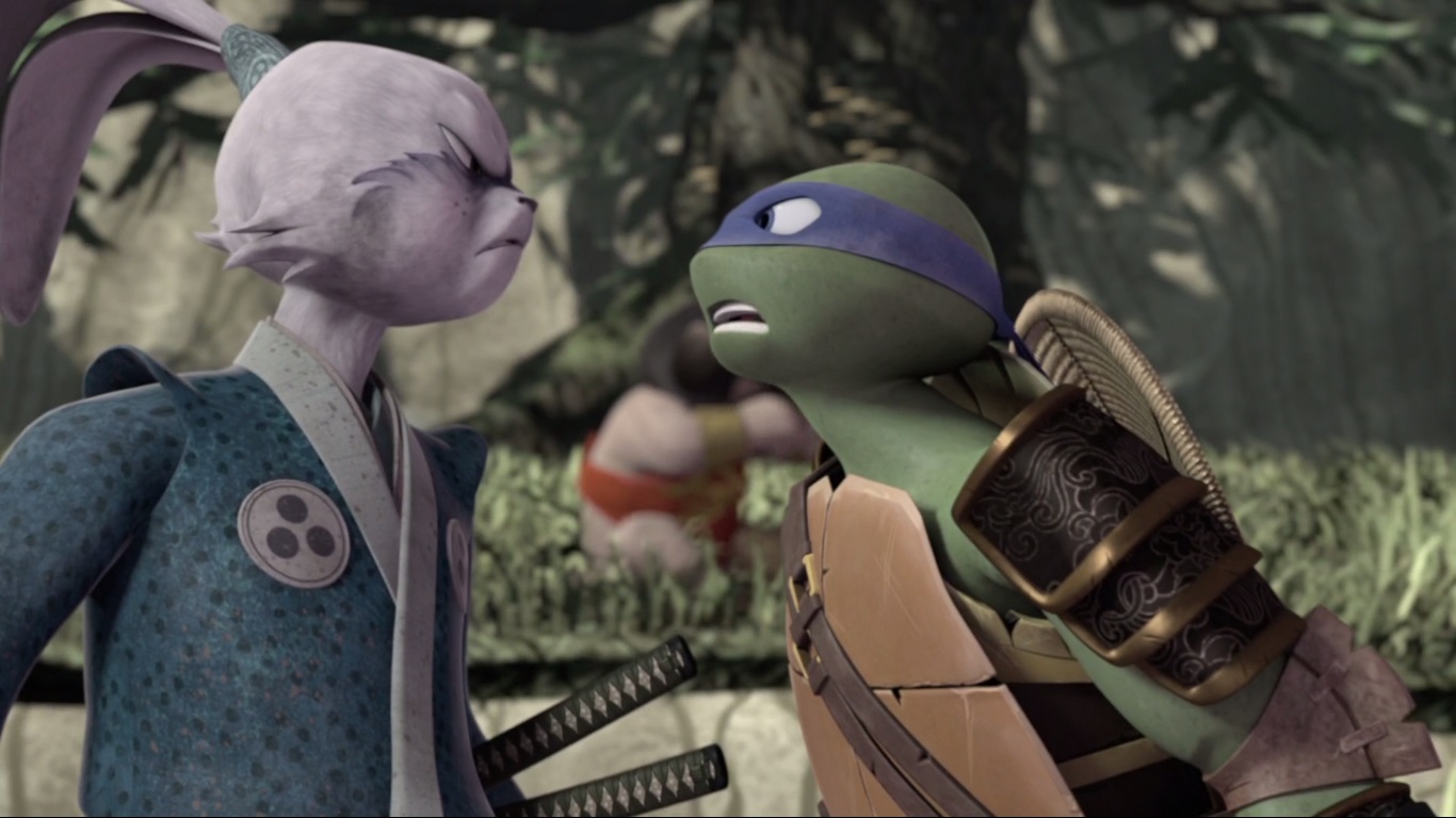 reconnait avoir été arrogant auprès d’Usagi. Au cours du deuxième crossover entre la tortue et Miyamoto Usagi (The crossing), le lapin raconte à des enfants qu’il était lors de sa jeunesse un guerrier arrogant qui avait provoqué Leonardo. Ce trait de caractère ne correspondant pas du tout au personnage du rōnin, les fans du comic de Stan Sakai se sont très vite offusqués de ce traitement apporté par Peter Laird.