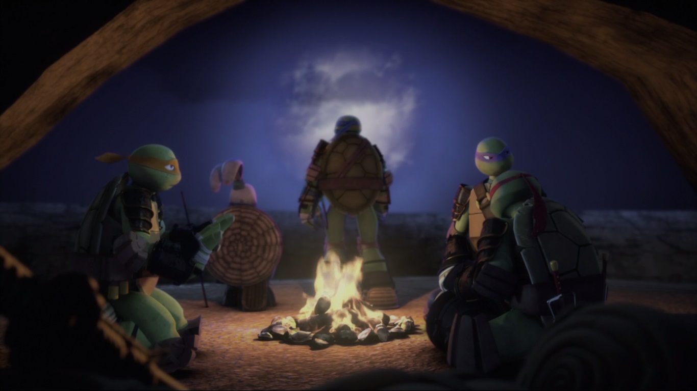 Après être sortis de cette terrible caverne, les compagnons dressaient un feu de camp contre la paroi de la montagne. Usagi avait été formidable aujourd’hui, apportant des conseils avisés et sauvant les tortues. Il avait toujours su garder la tête froide face au danger et l’analyser avant de se précipiter. Leonardo le reconnaissait volontiers, il avait été arrogant et lui proposait de prendre le premier tour de ronde pour qu’il se repose.