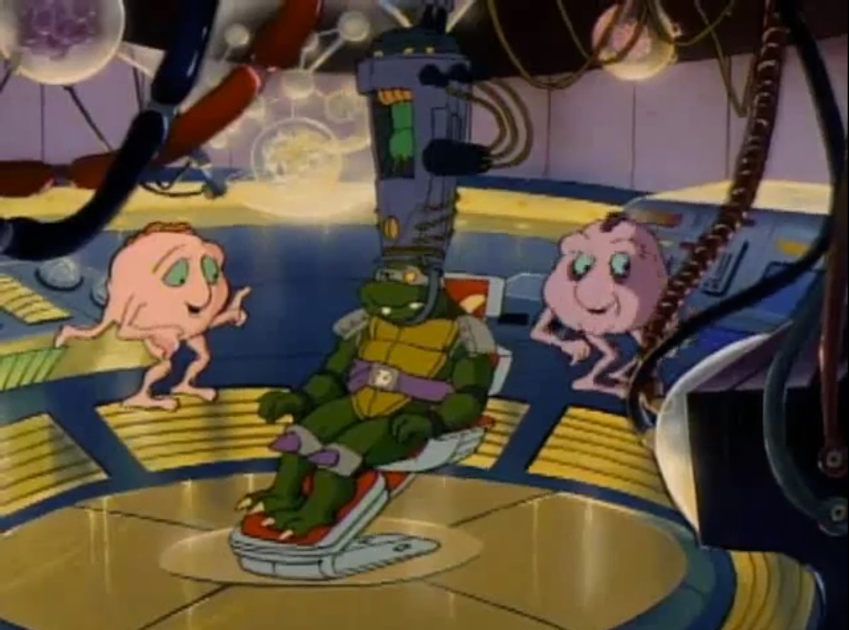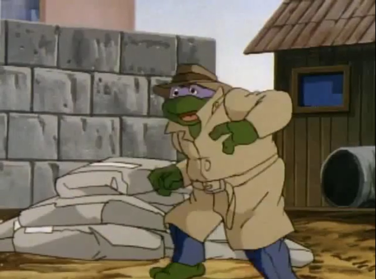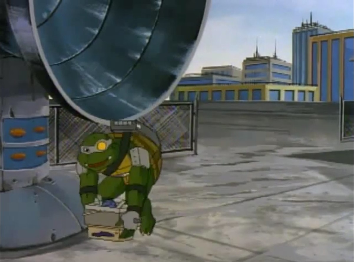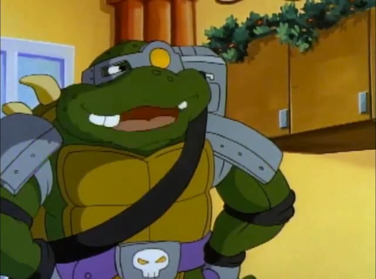 Pendant qu’il nettoyait le repaire, Donatello recevait les conseils de Splinter. Après avoir tout rangé, le ninja allumait la télévision. Vernon faisait un reportage sur un aquarium qui mettait en valeur des tortues protégées. Croyant ne plus être en direct, le journaliste ne manquait pas de dire à quel point il détestait ces reptiles. Enervé, Donatello partait pour Channel 6 pour dire deux mots à Vernon. Sur le point de partir, il entendait un flash spécial d’April : un vaisseau venait de se poser en ville avec une énorme tortue à son bord. S’agissait-il de Slash, envoyé dans l’espace (Slash, la terrible tortue, S4 E18) ? Il était pourtant trop stupide pour utiliser des armes sophistiquées comme les décrivait la journaliste…