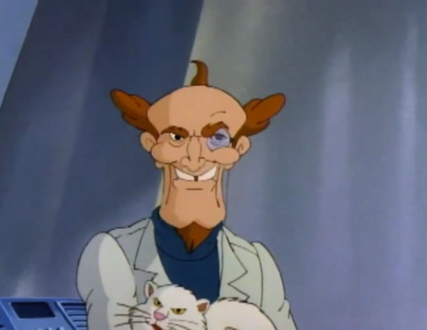 - Le professeur Vilmutt von Volt est une référence au Dr. Blofeld de l’univers de James Bond. Il est accompagné d’un chat blanc, qu’il caresse tout le temps. Cette caricature a souvent été reprise dans les séries et les dessins animés des années 80-90′.