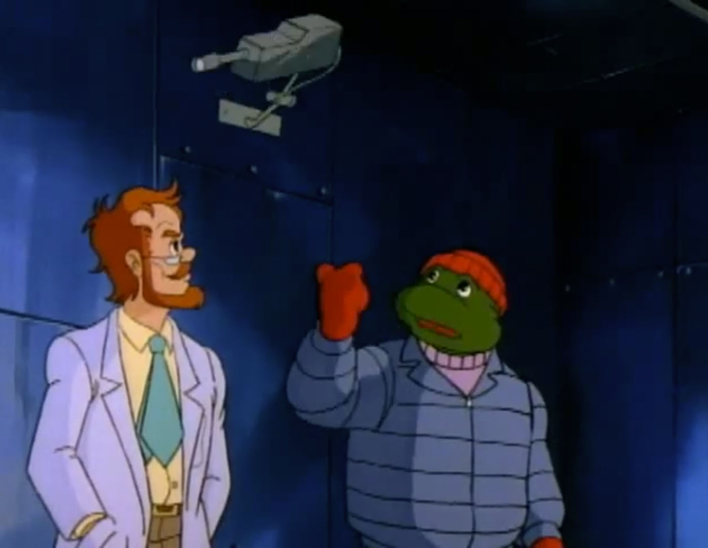 Les capteurs du professeur Vilmutt von Volt détectaient la machine de Donatello. Il comprenait très vite ce que cherchait à faire la tortue et ordonnait à ses deux larbins de s’occuper de ce gêneur.