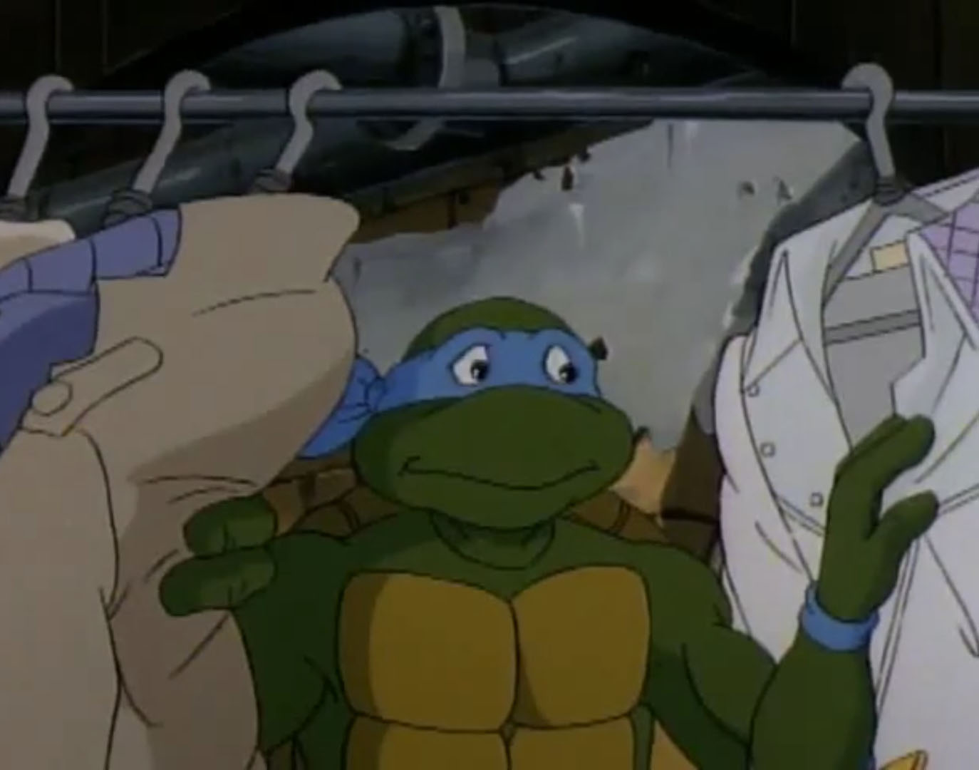 Elles avaient beau fouiller dans tout leur dressing, les tortues n’arrivaient pas à trouver de bons costumes pour le bal d’Halloween organisé par Channel 6. Leurs vêtements étaient trop courants, trop basiques… Rien n’allait. Au pied du mur, un conseil avisé venait de Splinter, qui entrait dans la pièce. Pourquoi n’iraient-ils pas simplement tels qu’ils étaient ? Une idée brillante !