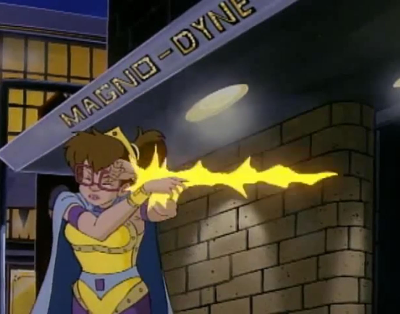 Avant les festivités, April réalisait un reportage sur l’aimant inverseur de polarité (reverse polarity magnetVO) mis au point dans un laboratoire. La démonstration du professeur Chumley était sans appel. Sa machine parvenait à soulever jusqu’à trois tonnes de métal en envoyant un rayon sur le minerai. Manque de chance pour le génie à l’origine de cette invention, il venait de recevoir une enclume sur le pied. Irma, qui assistait le caméraman se précipitait pour l’aider. Elle tombait dans un mélange de plusieurs produits laissés sur une table.