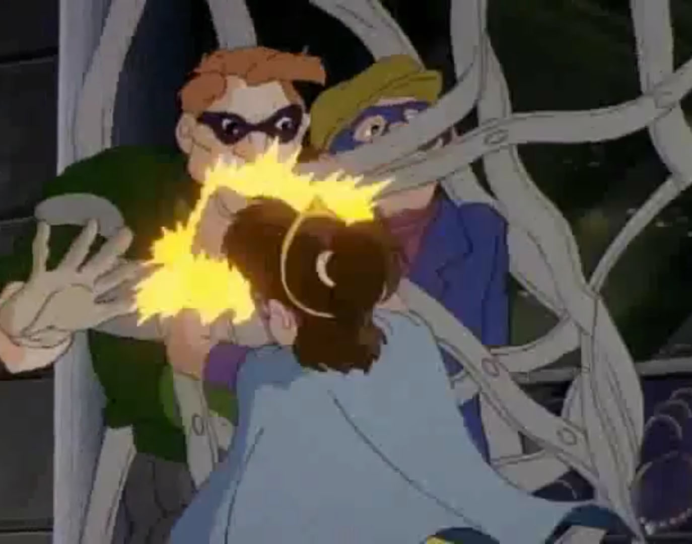 Après toutes ces émotions, les deux jeunes femmes rentraient chez elles. Sur leur chemin, des voleurs essayaient de leur prendre leur argent. Sans hésiter, Irma s’interposait. Elle savait qu’elle pouvait les faire fuir à l’aide de ses nouveaux pouvoirs. Évidemment, les hommes ne la prenaient pas au sérieux et lui sautaient dessus. April se mit à crier, ce qui attirait l’attention des tortues, qui venaient de les quitter au coin de la rue.