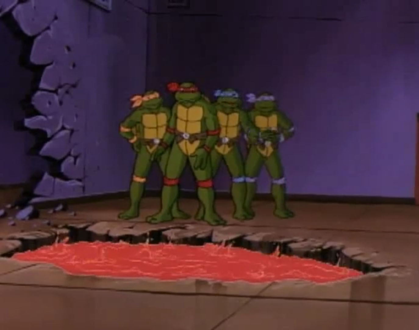 - Au cours de la saison 6, les modules du Technodrome vont devenir totalement amphibie et sortir de l’eau. Mais pour le moment, l’idée n’est pas encore venue aux équipes, qui le font traverser le sol, comme au début de cet épisode. Jusqu’à en faire jaïr de la lave !