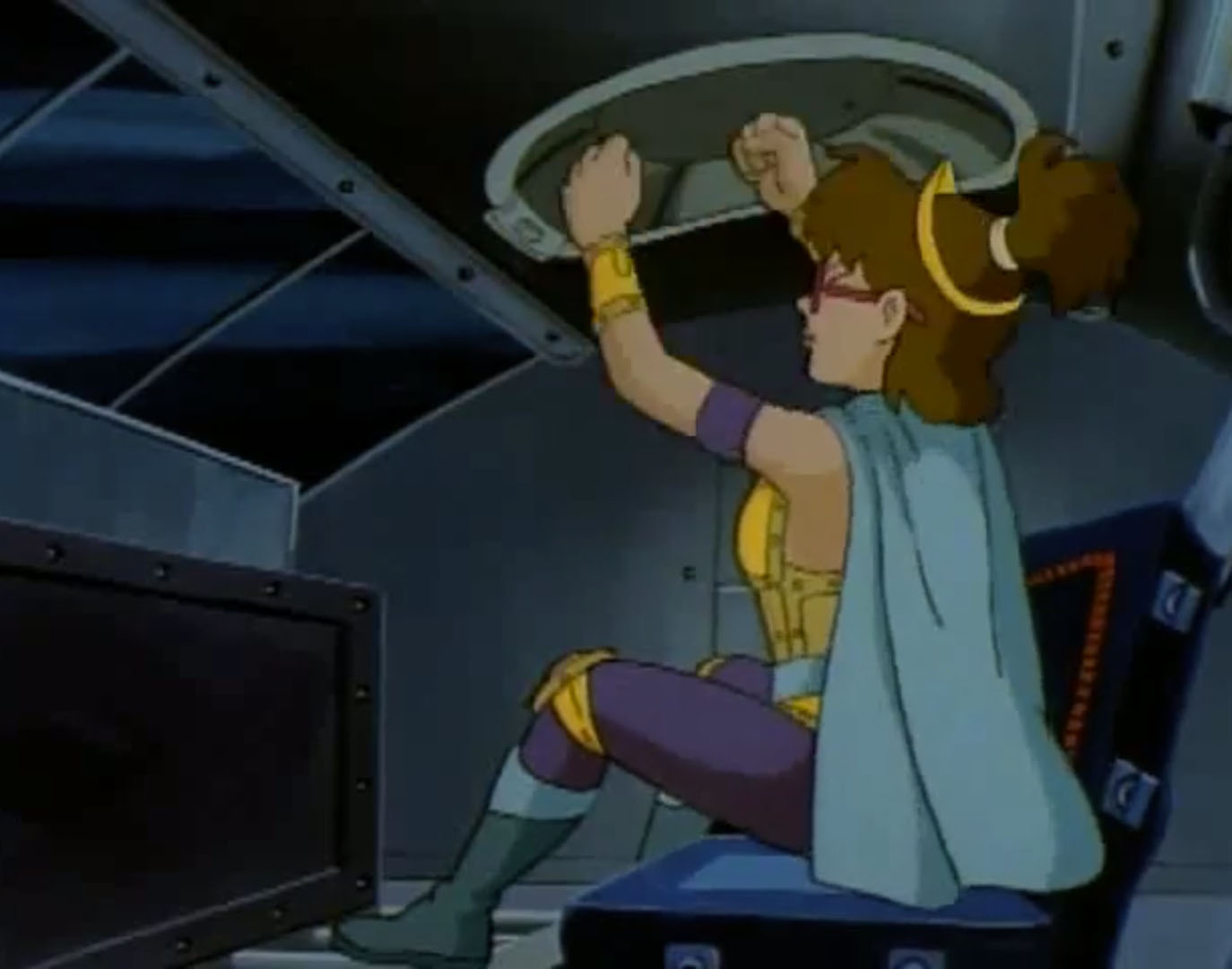 La justicière arrivait au bon moment. Bebop et Rocksteady soulevaient à peine l’appareil. Ils étaient loin de s’imaginer que Super Irma les dérangerait de nouveau. Mais toujours aussi maladroite, la journaliste tombait dans le coffre du module et y restait piégée. Le véhicule était chargé et prêt à repartir pour le Technodrome. Peu après leur départ, les tortues arrivaient. Plus d’Irma et un trou dans le sol où de la lave sortait. Son signal en revanche était de plus en plus faible. Le lien entre le module et la jeune femme était simple à faire. April entrait dans la pièce, accompagnée du professeur Chumley. L’homme leur expliquait comment fonctionnait l’appareil et surtout qu’il avait déjà fait l’objet d’une tentative de vol, le soir de Halloween. Un autre lien était immédiatement fait. L’origine des pouvoirs de leur amie n’était pas les produits chimiques dans lesquels elle était tombée. Mais le rayon de la machine qui avait frappé les parties métalliques de son costume ! Pire encore, les effets du rayon étaient provisoires. D’après les calculs du professeur, il ne restait plus environ que cinq minutes avant que Irma ne perde tous ses « pouvoirs ».