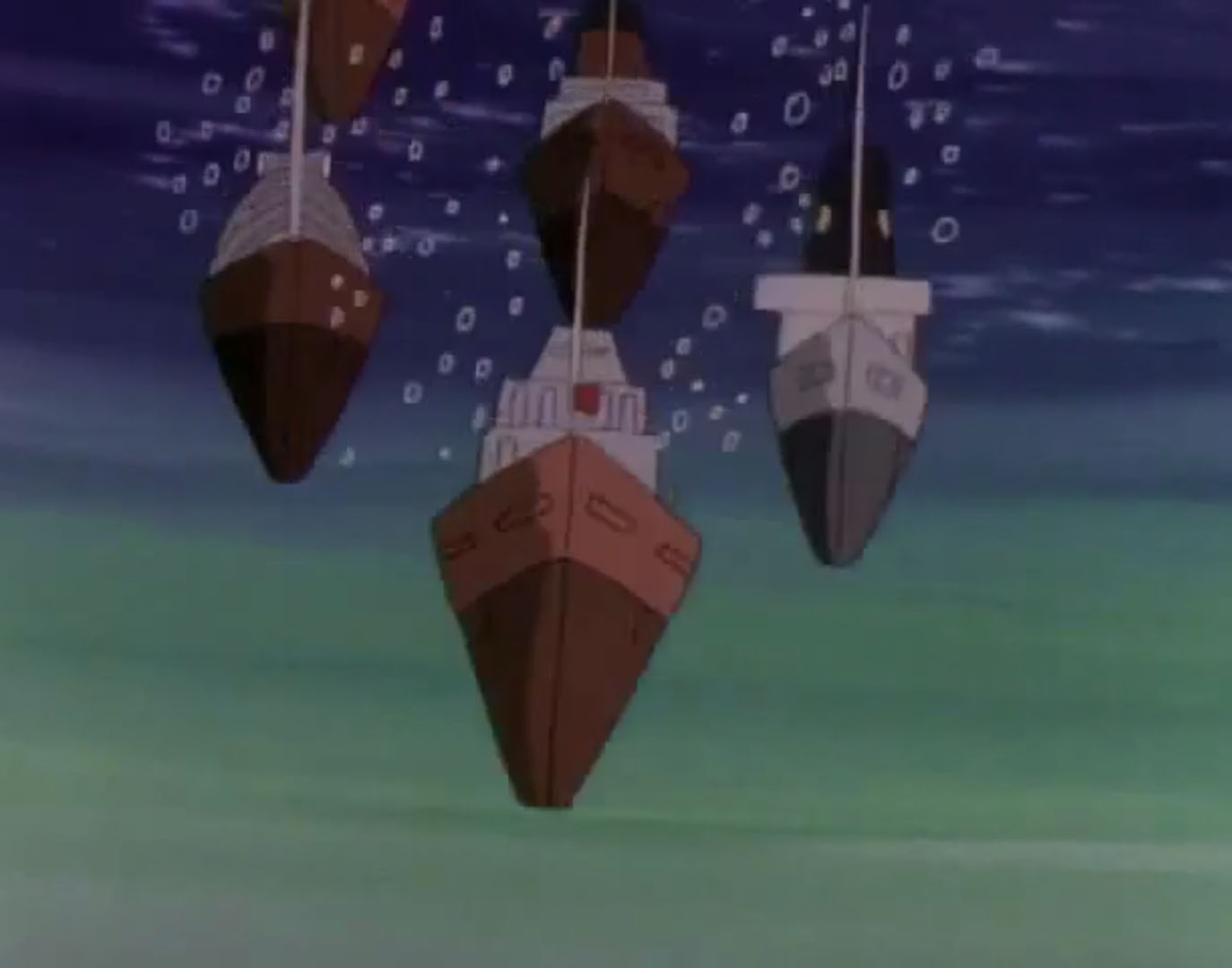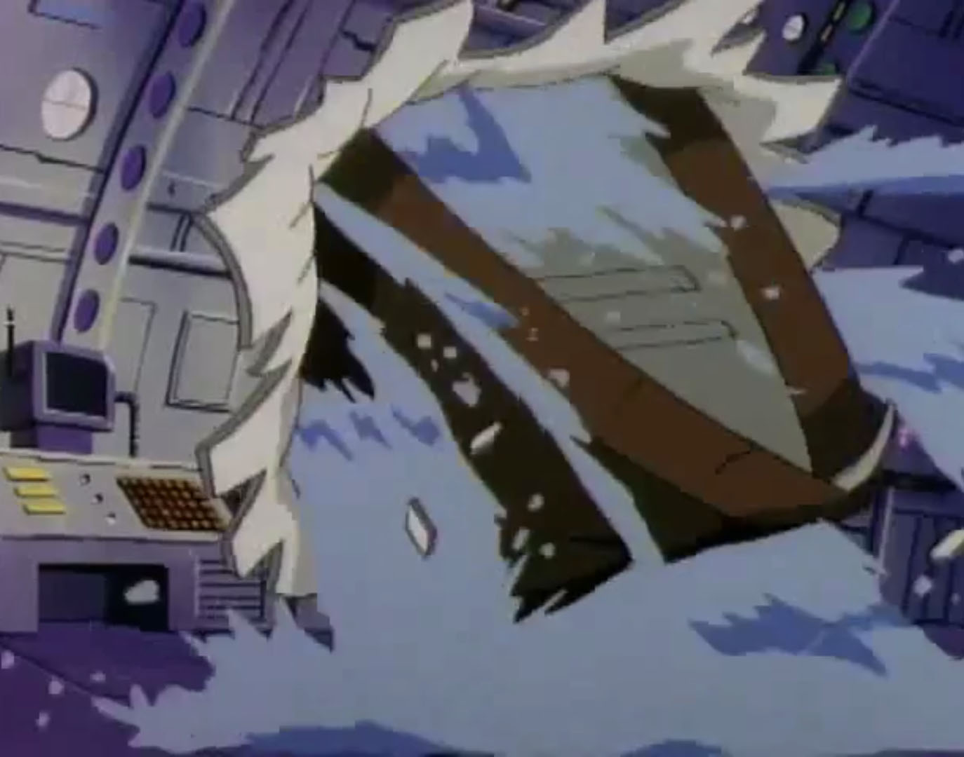 Tout fonctionnait à merveilles pour Krang, qui utilisait son nouveau rayon sur un bateau militaire. Il l’envoya dans la ville. Les tortues, depuis les baies vitrées du laboratoire, voyaient les premiers effets de l’aimant inverseur de polarité. Elles devaient intervenir au plus vite et prenaient le chemin pour le Technodrome à bord du Turtle van. Donatello pouvait le convertir en sous-marin. Le véhicule filait dans les profondeurs, bien qu’il ne puisse supporter trop de pression. Une fois à bord du vaisseau de guerre de Krang,
