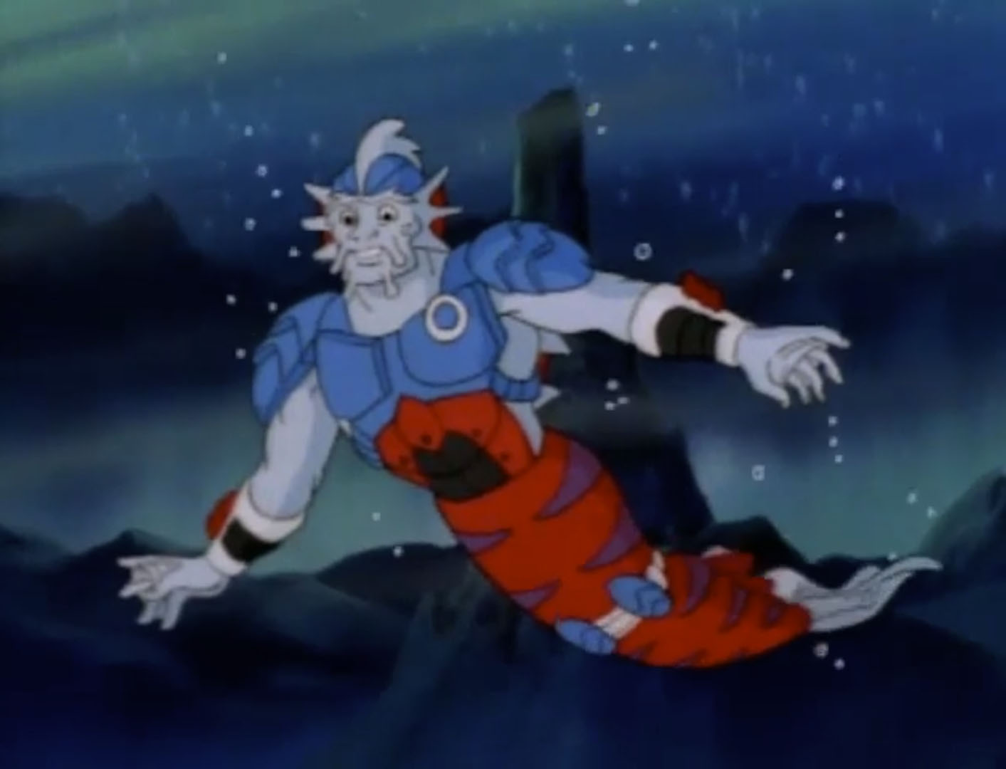 Alim avait eu le temps de s’emparer d’une lance pour défier son adversaire. L’homme poisson entendait les encouragements d’Hepax, qui lui indiquait un trident magique, que seul le vrai roi de l’Atlantide pouvait détenir. Une fois en main, il forçait Bebop à se rendre. Alim Coelacanth était déclaré comme étant le vrai roi de la cité. Les tortues entraient dans l’arène pour avertir leur ami que Shredder avait l’étoile de l’Atlantide. Ils se dirigeaient vers le château, où Shredder s’apprêtait à partir à bord de son module. Alim, Hepax et les tortues arrivaient au même moment. Pour les empêcher de les suivre, l’homme au masque de fer tirait sur la coupole. L’eau pénétrait dans la cité. De ses pouvoirs, Alim demandait à un calmar géant de colmater la fissure de l’un de ses tentacules. Ils partaient aux trousses de leur ennemi. Pour concurrencer sa vitesse, l’homme poisson demandait l’aide de deux orques.