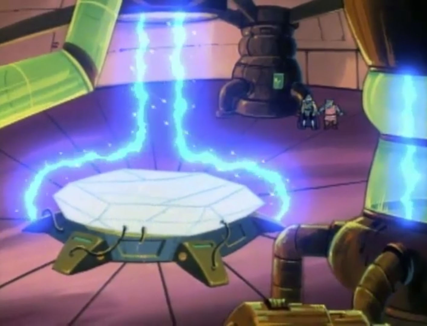 Après l’échec de la capture de leurs ennemis, Shredder et Rocksteady exploraient les couloirs du palais. Ils découvraient une pièce avec un cristal gigantesque. Il s’agissait de l’étoile de l’Atlantide, sa source d’énergie. Mais aussi ce que percevait le Technodrome. Krang salivait à sa vue, il pourrait s’en servir pour le canon principal de sa forteresse de combat. Il lui suffisait de demander à Bebop quelques hommes pour déplacer cet énorme minéral.