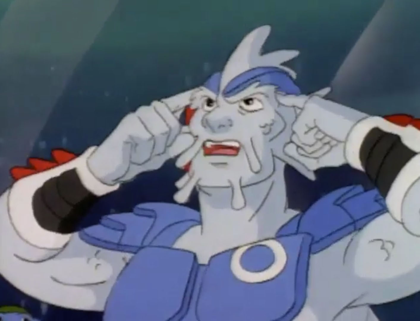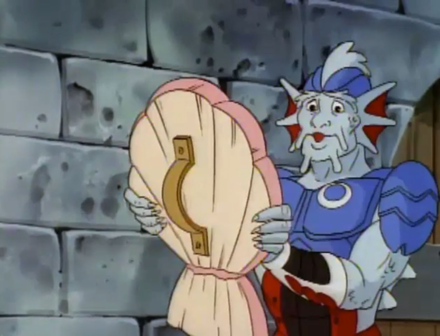 Shredder était parti demander de l’aide à Bebop pour récupérer l’étoile de l’Atlantide. Mais le phacochère royal refusait de bouger le petit doigt. Pire encore, face à l’insistance de son supérieur, il ordonnait à ses gardes de les faire reculer et les forçait à se prosterner devant lui. Le pouvoir lui montait à la tête ! À genoux, Shredder saisissait son communicateur pour demander à Krang de faire bruler toute la chambre de Bebop. Entendant ces menaces, le phacochère craignait pour ses jouets, sa collection de comics… L’homme avait gagné, le roi de l’Atlantide se rendait et assouvissait les désirs de son supérieur. Des gardes étaient envoyés pour retirer le cristal, malgré les réticences de l’érudit. Le mutant ne l’écoutait pas.