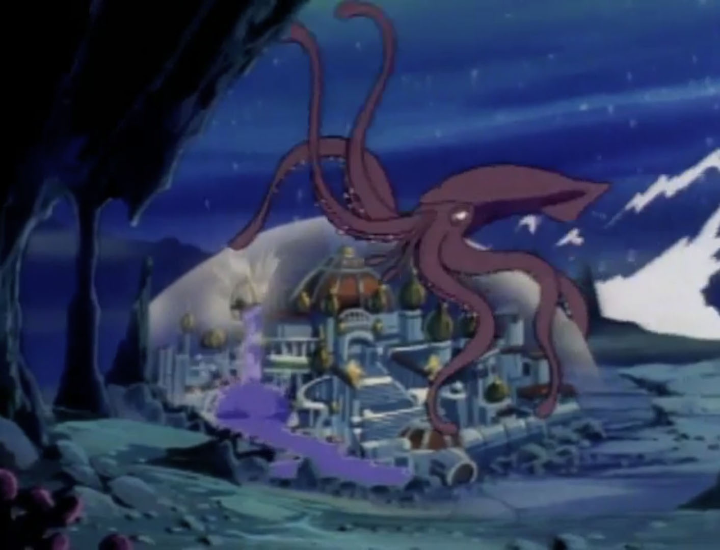 Le module parvenait au Technodrome. Le cristal était installé au niveau du laser principal, situé dans l’œil de l’appareil. Raphael et Donatello voyaient qu’il était dirigé vers l’Atlantide et s’empressaient de dévier le tir. Shredder pestait. Leonardo créait une brèche, permettant à Alim de récupérer le cristal. Une baleine s’en emparait pour le ramener dans la cité.