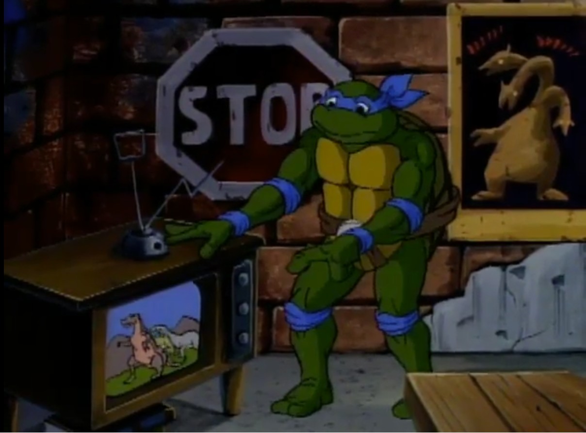 Après avoir résumé l’invasion des triceratons à Donatello, la tortue réfléchissait à un plan. Comme les envahisseurs semblaient ne pas vouloir faire de mal aux reptiles, ils allaient essayer de leur faire croire que la Terre était dominée par les dinosaures. Les mutants partaient pour le musée.
