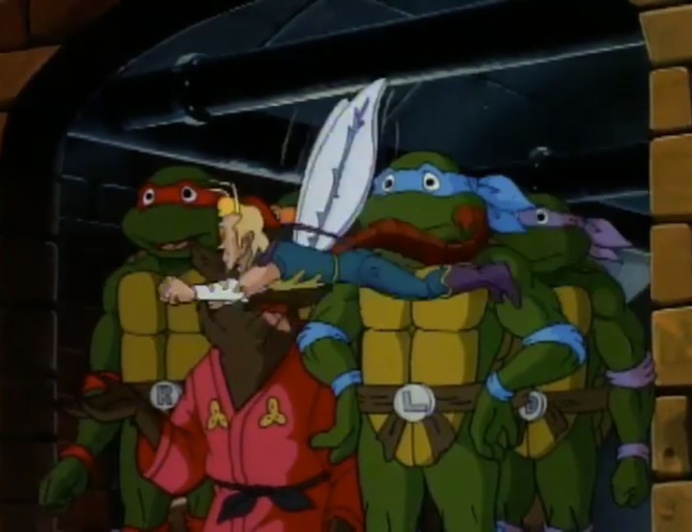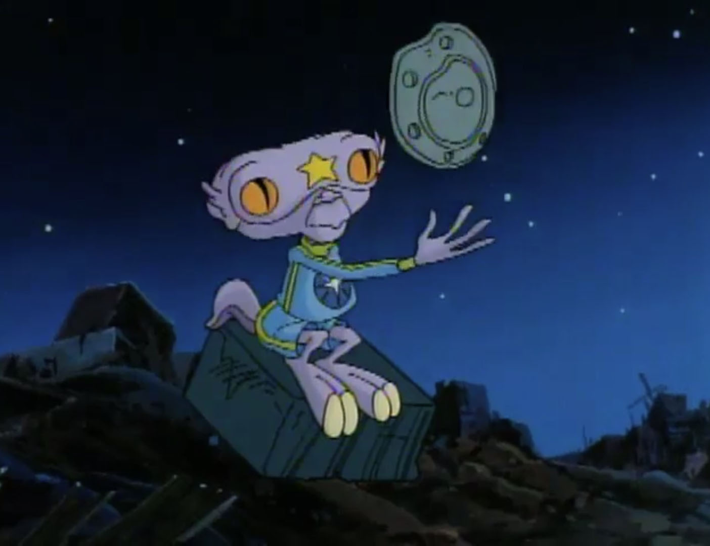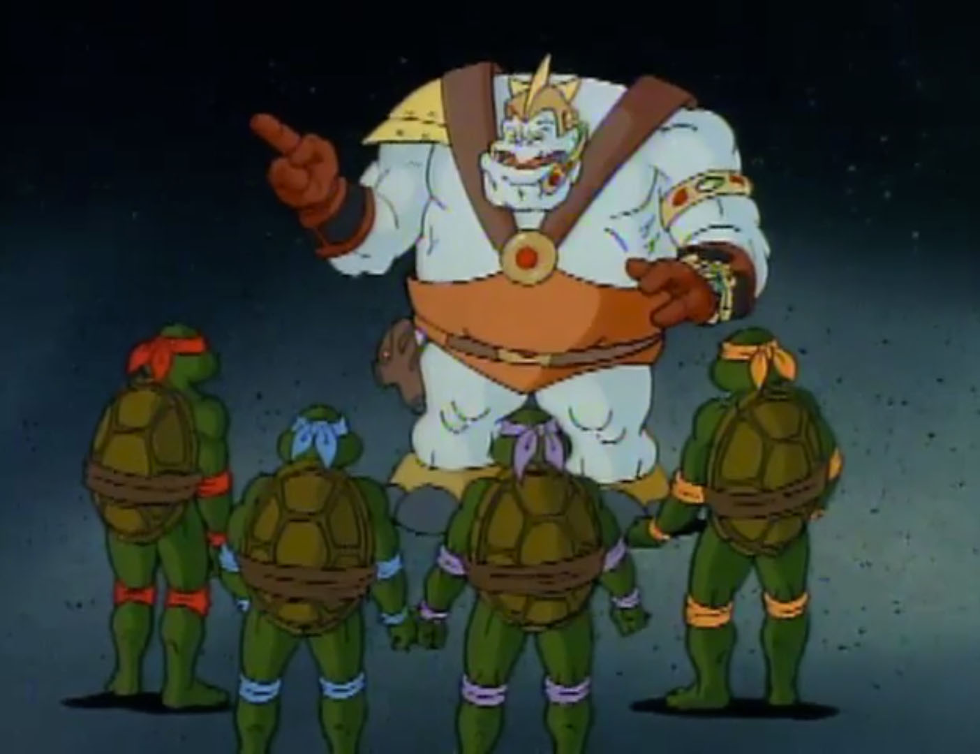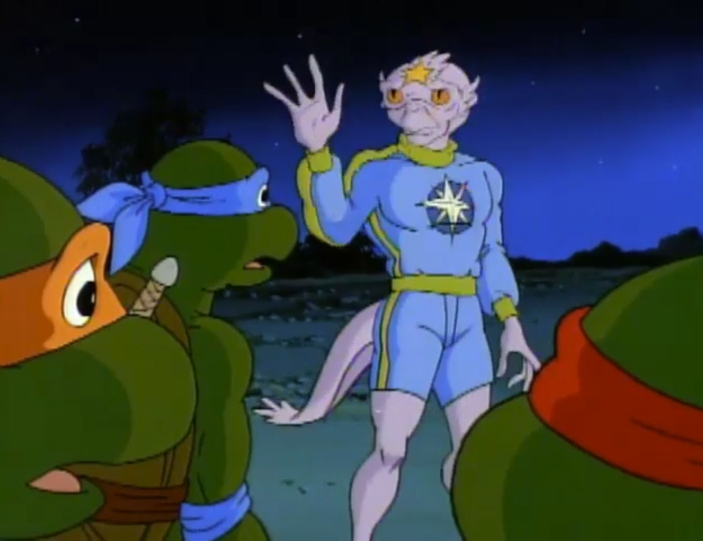 - David Wise, le scénariste le plus prolifique du dessin animé des Tortues Ninja est également connu pour reprendre ses propres scénarios d’une série à l’autre. En 1986 était sorti un épisode de Defenders of the Earth sur lequel il avait travaillé du nom de « The starboy ». La trame scénaristique était sensiblement identique (source). L’enfant avait même une étoile rouge sur le front !