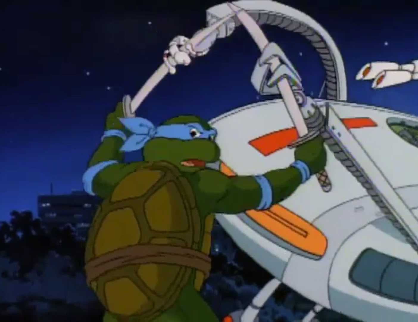 Un soir, Donatello emmenait ses frères dans la décharge pour y débusquer quelques objets qui lui seraient bien utiles pour ses prochaines inventions. Mais les autres tortues n’y voyaient pas grand intérêt et ne cessaient de rouspéter. Alors que le bricoleur tirait une plaque de tôle d’un tas d’ordures, le monticule s’effondrait sur Raphael. Leonardo préférait qu’ils s’en aillent avant que quelqu’un ne se blesse réellement. C’est alors que Michaelangelo vit quelque chose dans le ciel. Un vaisseau était en train de s’écraser à quelques dizaines de mètres des ninjas.