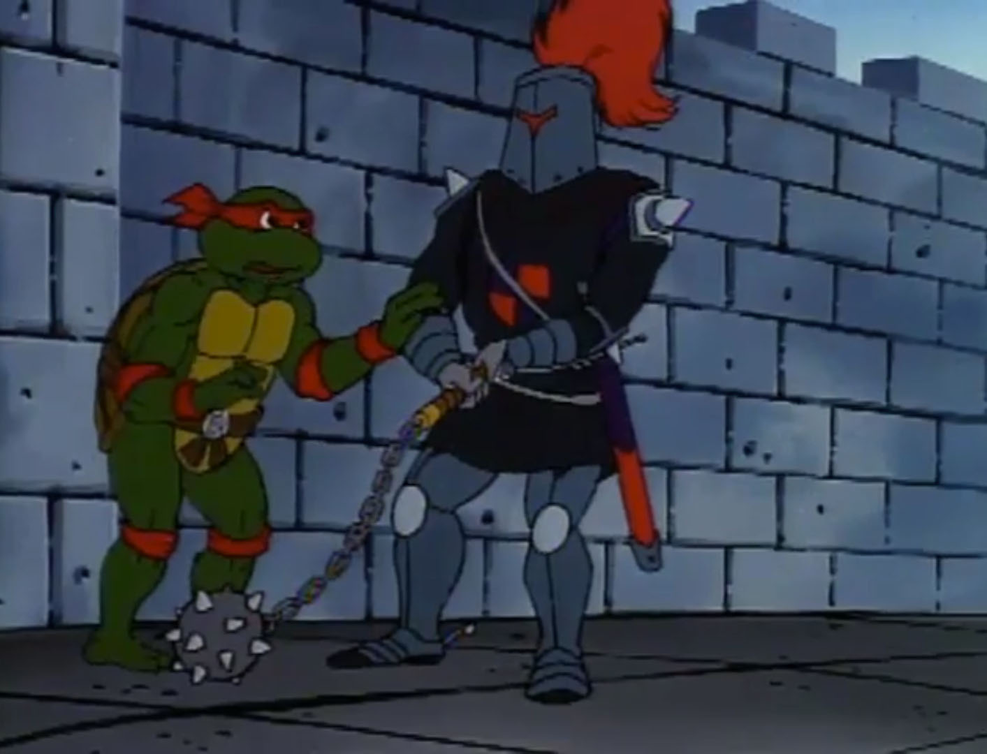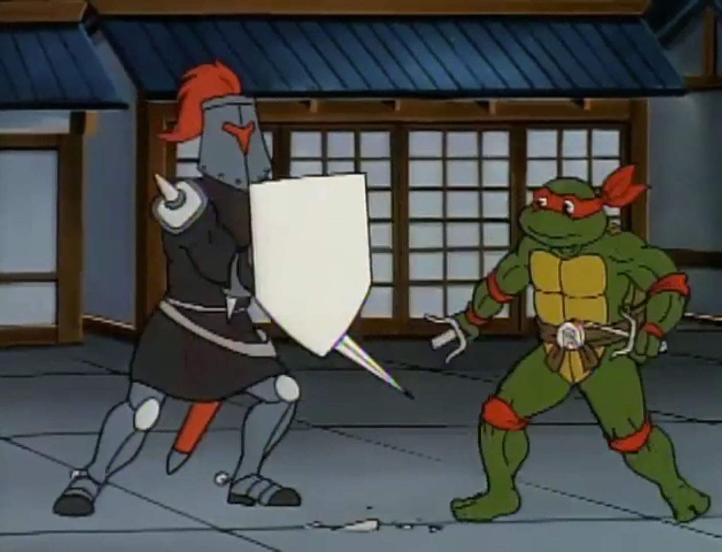 Peu après, Vernon prenait du bon temps sur une barque. Deux robots s’avançaient vers lui et tailladaient le petit bateau. Pendant ce temps, Michaelangelo neutralisait les chevaliers un à un. Il affrontait peu après le chevalier noir, qui brisait son épée. Son arme n’était peut-être pas si factice que cela. Un samurai et un autre chevalier venaient le capturer à leur tour. Quelque chose ne se passait pas comme prévu.