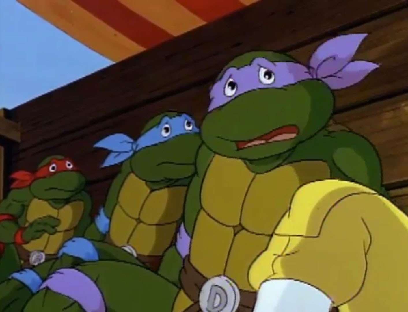 La journaliste présentait M. Stressbar aux tortues. Il était accompagné de son assistant, qui refusait que les quatre ninjas utilisent leurs armes. Un premier point qui déplaisait aux tortues, qui déposaient leurs armes au sol. Irma avait un mauvais pressentiment. Les frères auraient des armes factices pour les batailles. Peu après, Leonardo partait pour Shogun Land. Michaelangelo pour Medieval Land. Raphael et Donatello partaient explorer le futur.