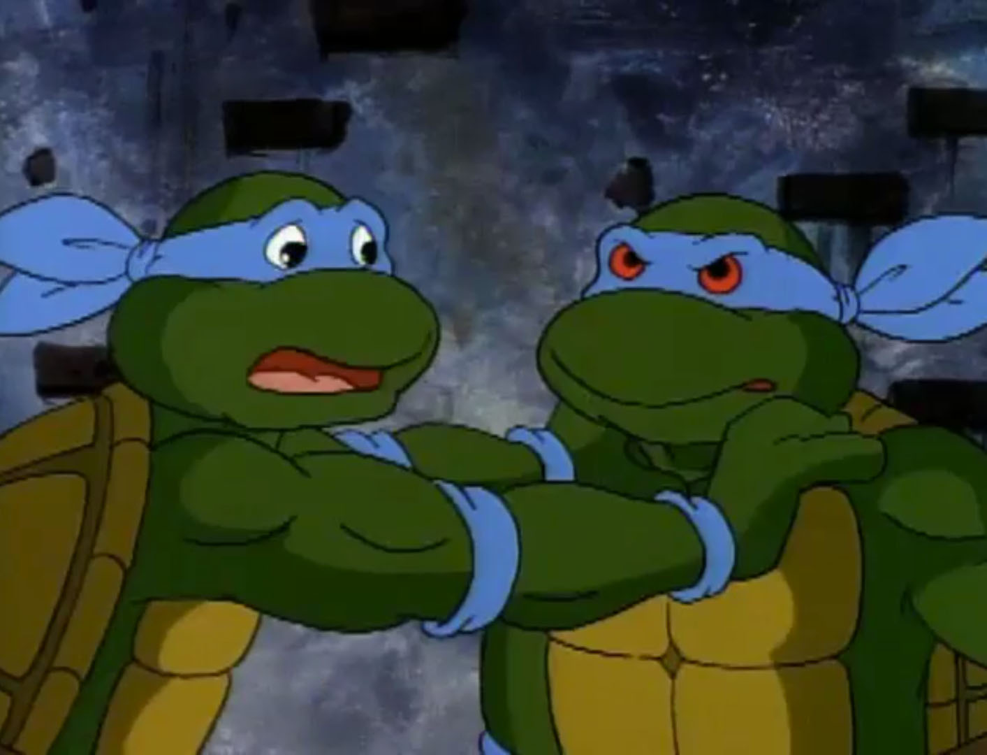Le Turtle van entrait en trombes dans le parc, renversant les robots de défense. Raphael et Donatello s’empressaient de rejoindre les souterrains, mais tombaient sur les cyber-clones de Leonardo et de Michaelangelo. Les deux frères étaient incapables de les frapper. Au même moment, les tortues originales faisaient irruption, prêtes à en découdre avec ces copies aux yeux rougeoyants.